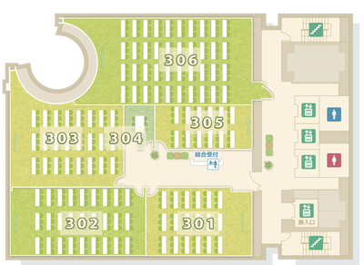 2F【大会議室】(203+204会議室) お問い合わせください385.1㎡ / 4.5m 270 (スクール) 2F【203会議室】 お問い合わせください201.4㎡ / 4.5m 108 (スクール) 2F【204会議室】 お問い合わせください183.6㎡ / 4.5m 144 (スクール) 会場をもっと見る - 検討