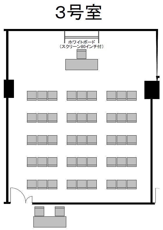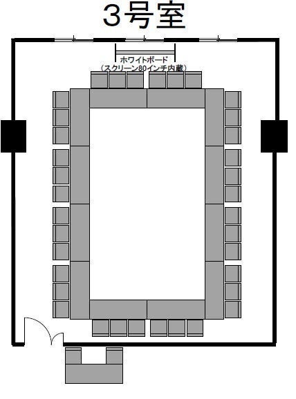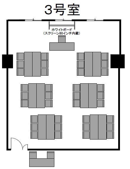 ※ホワイトボード(スクリーン80インチ付き)1台が備え付けとなっております。 スクリーンとホワイトボードは同時に使用することができません。 ※有線・無線共にインターネットがご使用いただけます。 通信速度に関しては、回線の混雑状況により繋がらない事や速度低下が発生することがあります。
