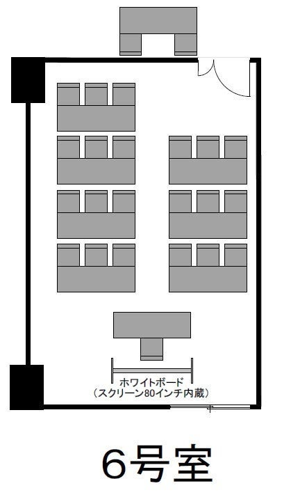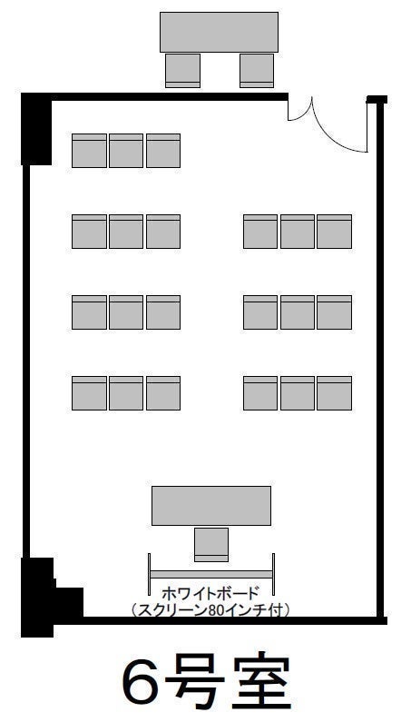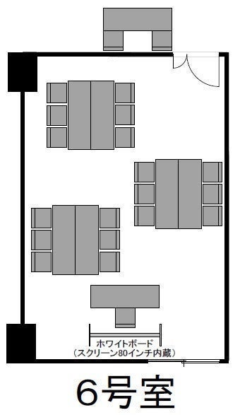 ※ホワイトボード(スクリーン80インチ付き)1台が備え付けとなっております。 スクリーンとホワイトボードは同時に使用することができません。 ※有線・無線共にインターネットがご使用いただけます。 通信速度に関しては、回線の混雑状況により繋がらない事や速度低下が発生することがあります。