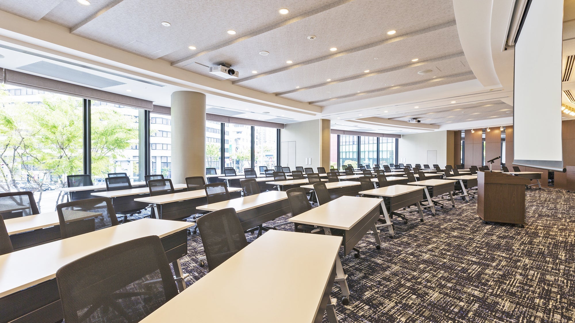 お客様のご利用人数や目的に合わせて最適な会場やレイアウト、プラン等をご提案いたします。 メインの「プレミアホール」は200㎡、スクール形式で最大80名様までご利用頂けます。 天井も高く(3m)会場後方に窓があるため明るく開放的な空間になり長時間の研修・会議も疲れを感じることなくご利用いただけます。 SAKURAルーム(30㎡)は、少人数での会議はもちろん面接会場に最適でございます。