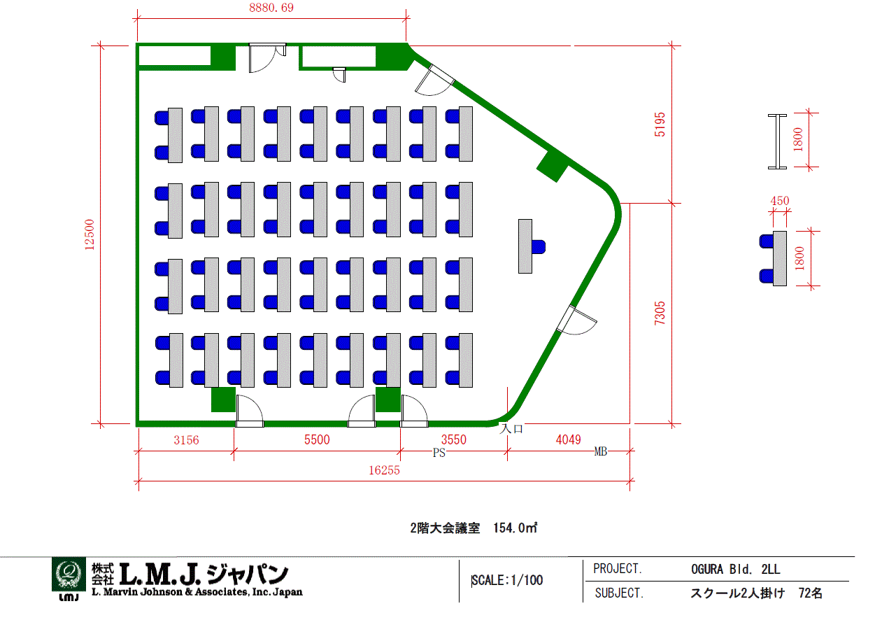 | おすすめ用途 | 会議、セミナー、新人研修、会社説明会、面接、試験、株主総会、東京ドームイベントの控室等 |