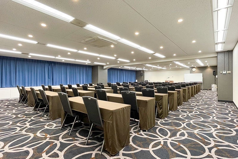 【備品】 テーブル:36 椅子:108 演台:1 ホワイトボード:1 ステージ:1 有線マイク:2 【設備】 個別空調 電気容量:60A LAN口数:2 【室外受付設置】 可