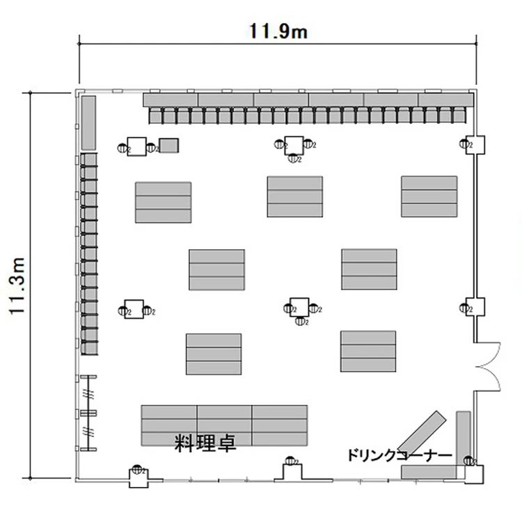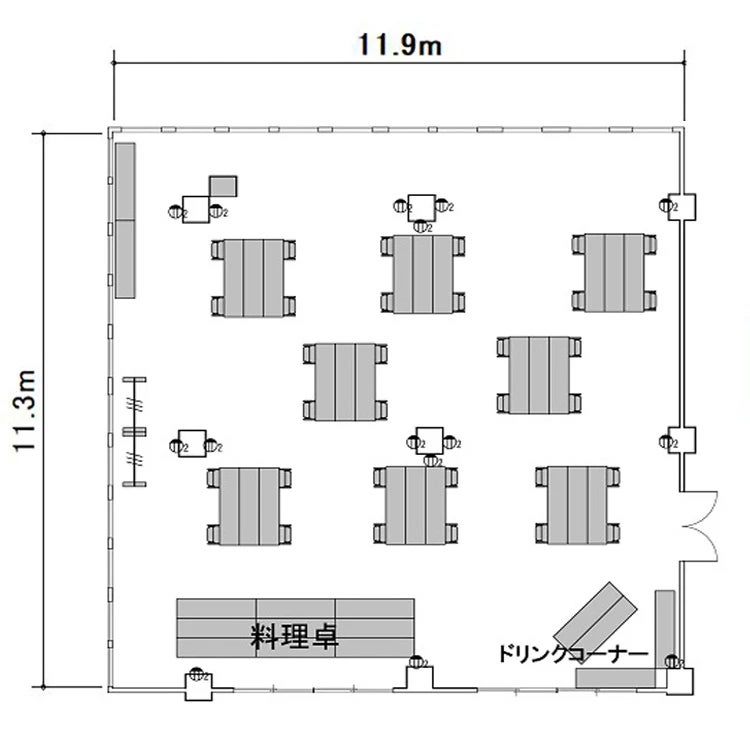 ※オプションサービス・備品のお申し込み、レイアウトを変更される場合は、ご利用日の3営業日前までにご連絡ください。