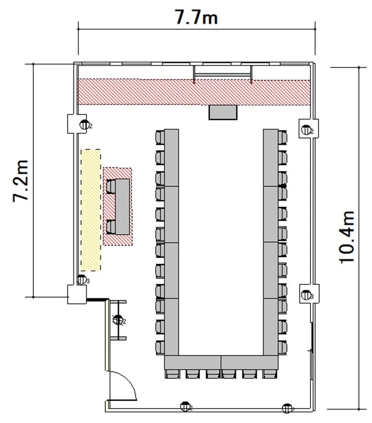 【備品】 机:20 椅子:60 ホワイトボード:1 演台:1 ハンガーラック 掛け時計:1
