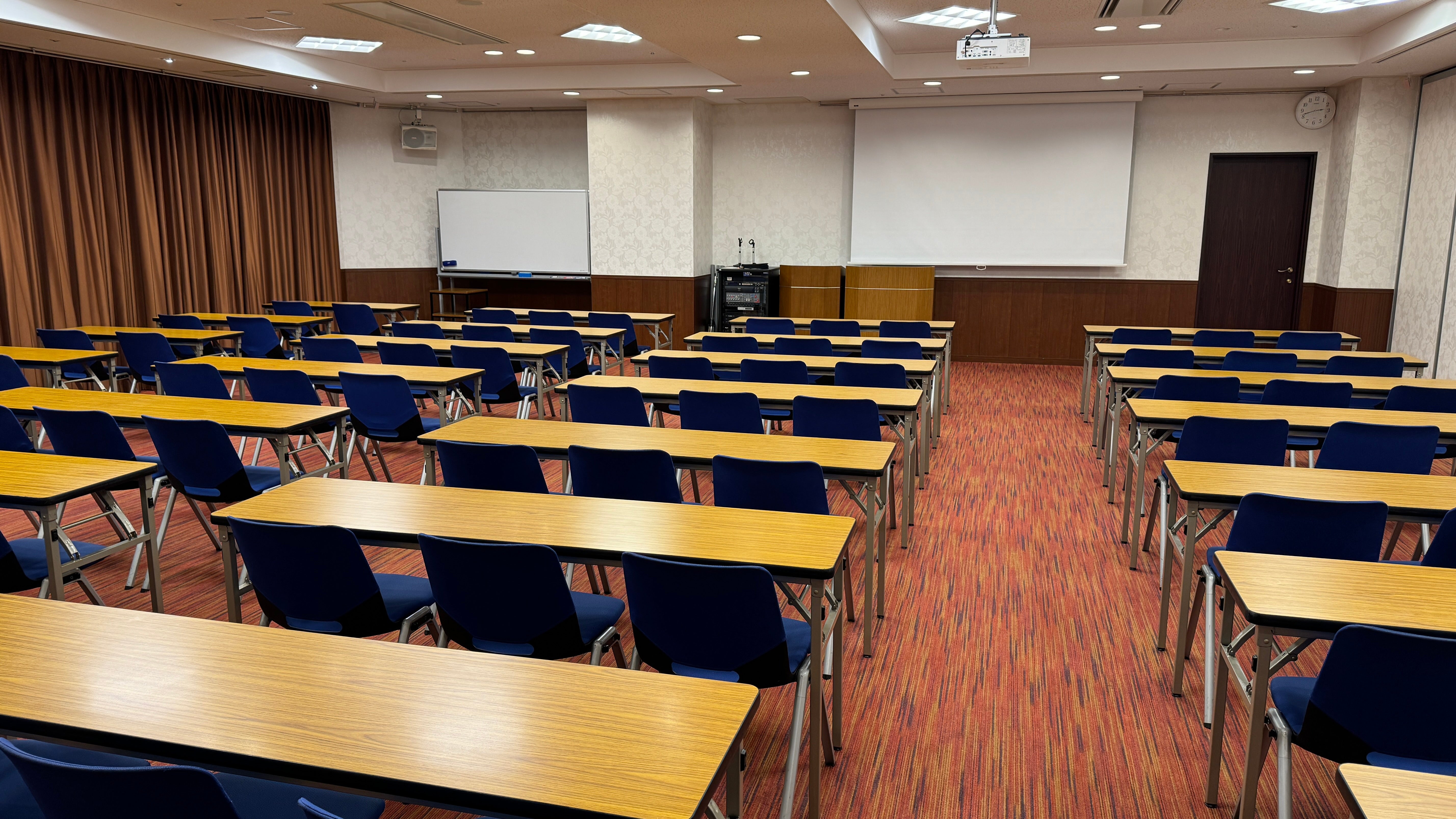 天井高2.7m、基本スクール77名(レイアウト変更可能)。 隣接する桜Ⅱ会議室と合わせて桜Ⅰ+Ⅱ(スクール139席)としても使用可能です。 お電話、メールにてお気軽にお問い合わせください。