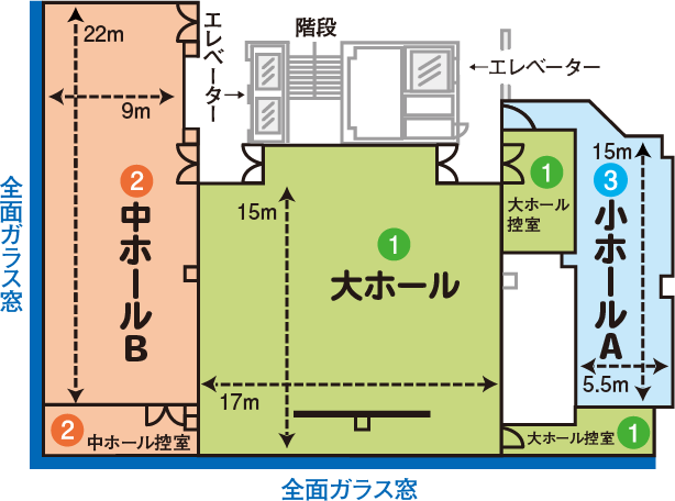 | 電話番号 | 06-6268-5461 会場見学の際は、必ず空き日を確認の上お越しください。 |