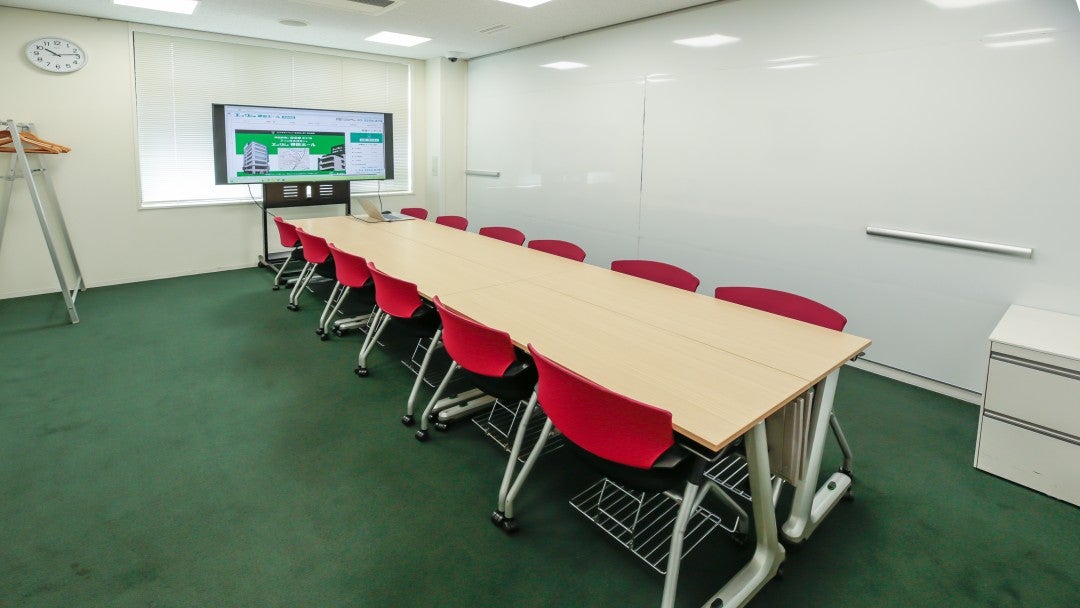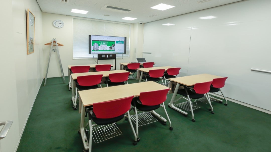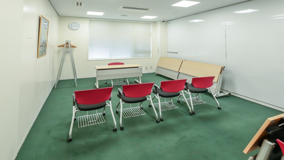 貼付・剥離しやすい壁と天井から足元までのホワイトボードウォールなどを使って、 多様な利用が可能な小会議室。 収納棚付きのイスで、コンパクトなミーティング空間が実現できます。 また、講師や運営者の控え室にぴったりのお部屋です。