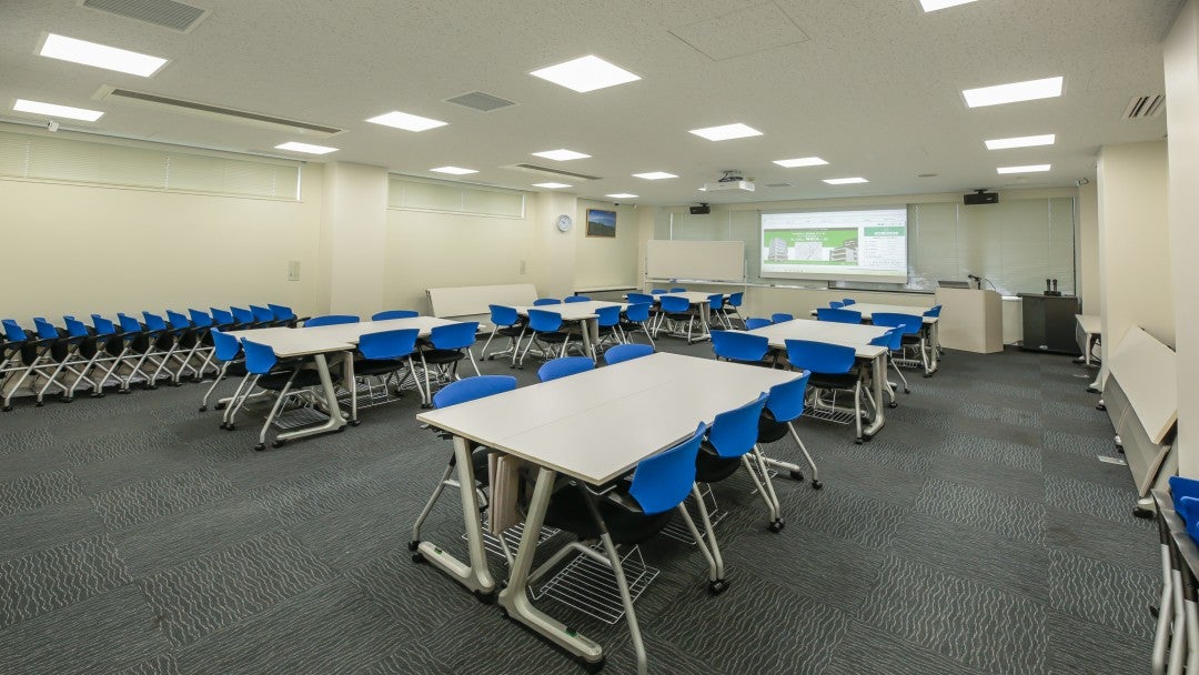 操作が簡単な画面切替システムで、多様な会議運営が可能な中会議室。 社内会議はもちろん、株主総会や研修など多様な用途でご利用いただけます。