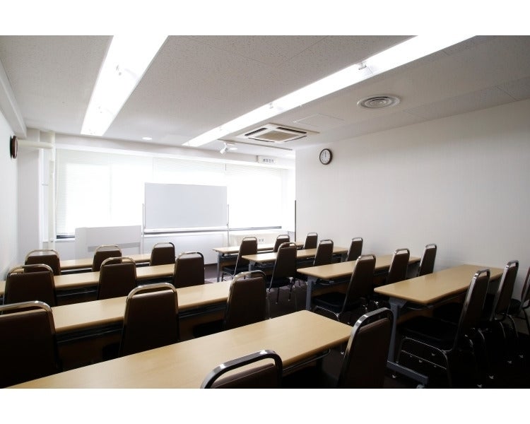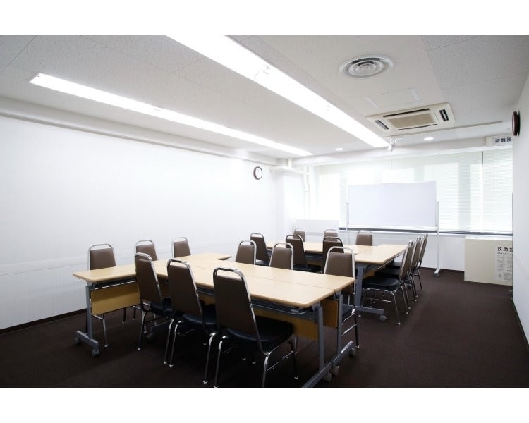 スクール形式での利用が定番のお部屋! ちょっと変形したお部屋のつくりですが パーテーションで区切ったり、畳を敷いてのご利用など、さまざまな使い方が可能です。