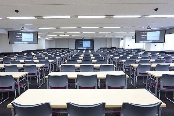 | おすすめ用途 | スクール形式236名収容可能な会場です。会議・研修・セミナーから 会社説明会、各種試験会場としても多くご利用頂けます。 |