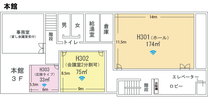 | キャンセルについて | キャンセルを行う場合は、予約フォームよりキャンセル申し込みを行ってください。 本予約後のキャンセルは運営者の定めるキャンセル料金をご請求させていただきます。 申込された備品等の料金もキャンセル料に含まれます。 ご利用日より H301 → 3か月前・・・料金の50% 2か月前・・・100% その他の会議室 → 2か月前・・・50% 1か月前・・・100% |