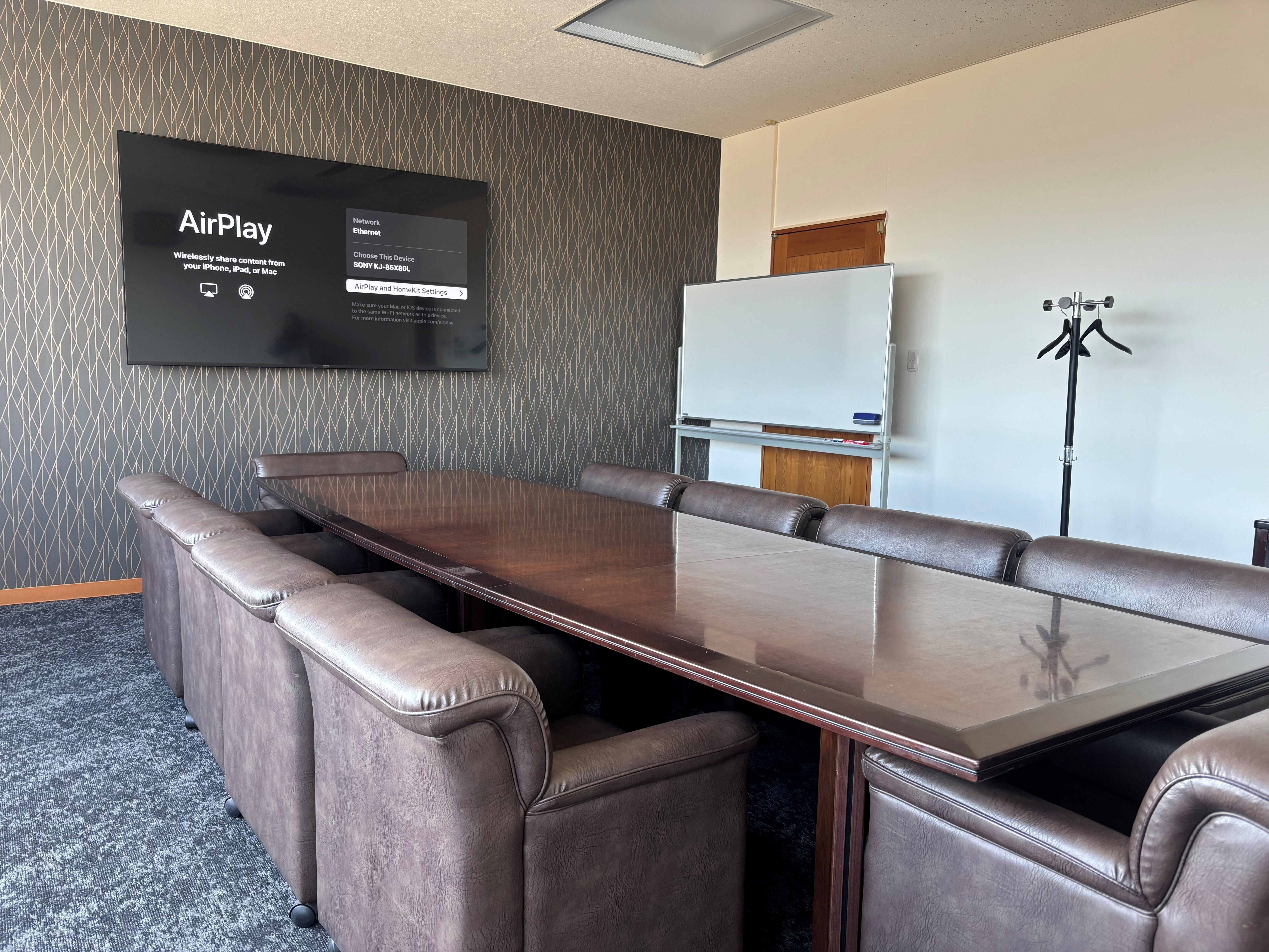 講師控室、面接・面談などのシーンに最適な応接タイプのお部屋です。 TV大型モニター(85インチ)はPC連動可でミーティングにも最適の環境設備です。 ホワイトボード1台常設 フリーWi-Fi完備