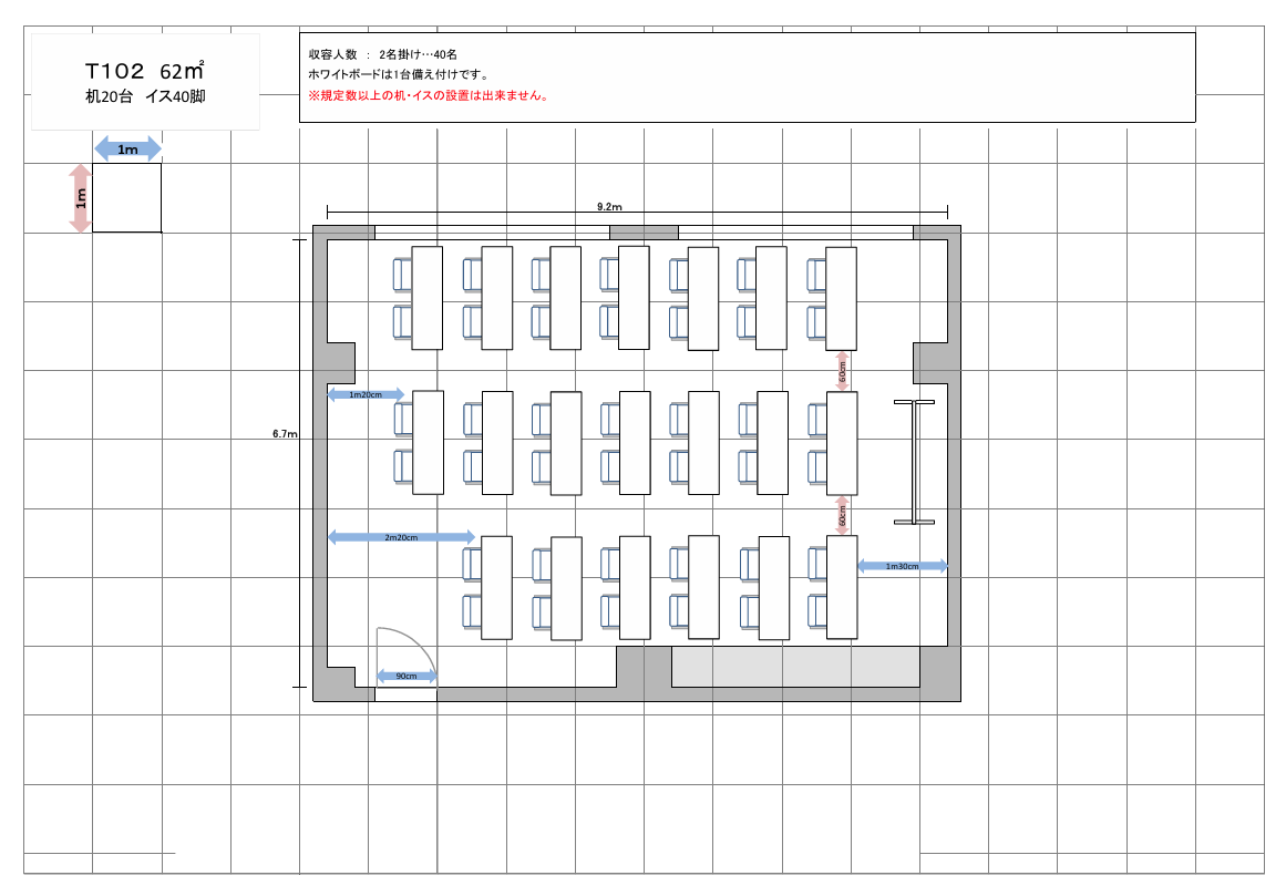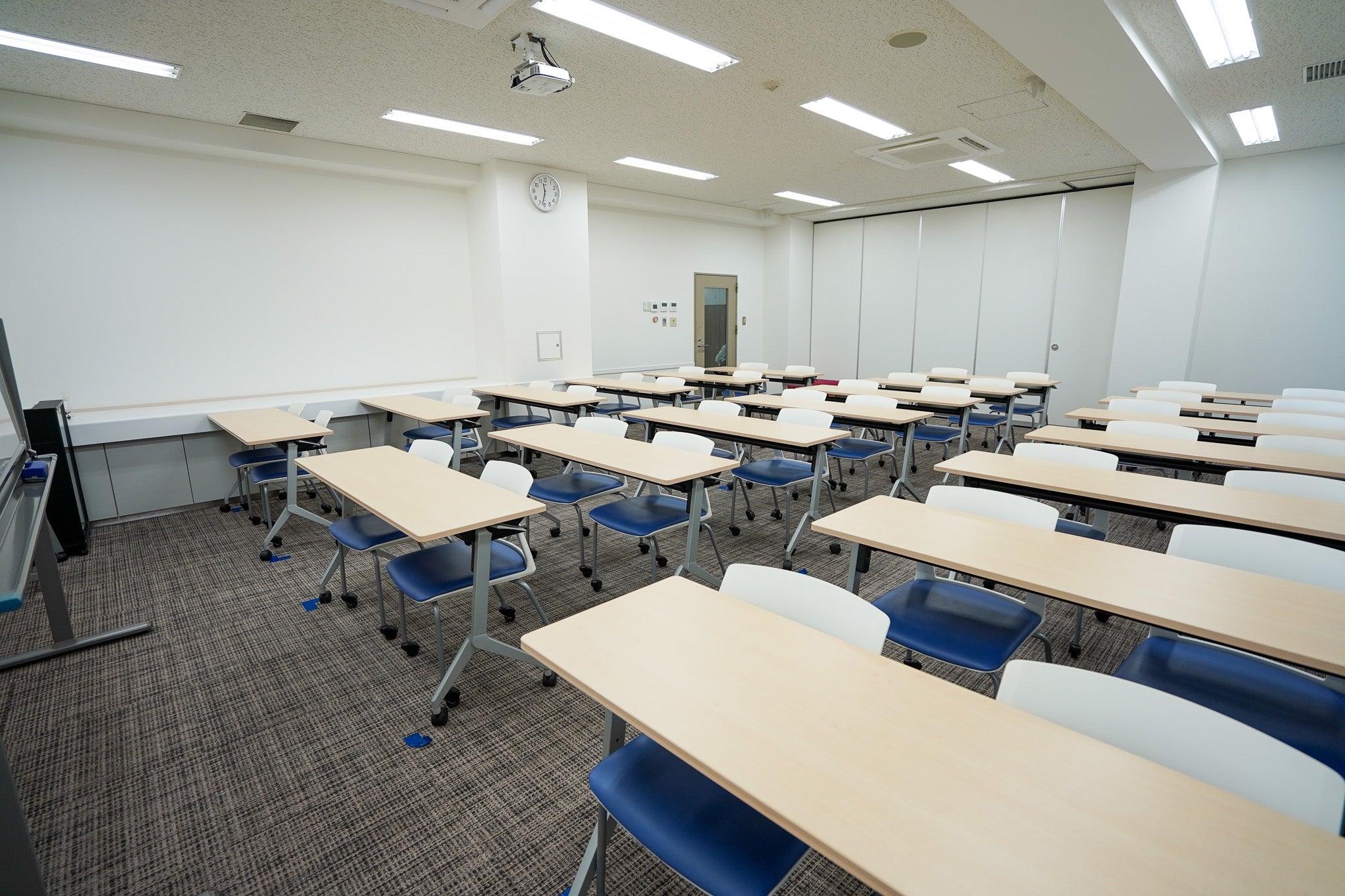 机20台の40名が利用可能なお部屋です。 道路に面していない為静かで試験会場、ミーティングに適した環境です。 ホワイトボード1台常設 フリーWi-Fi完備