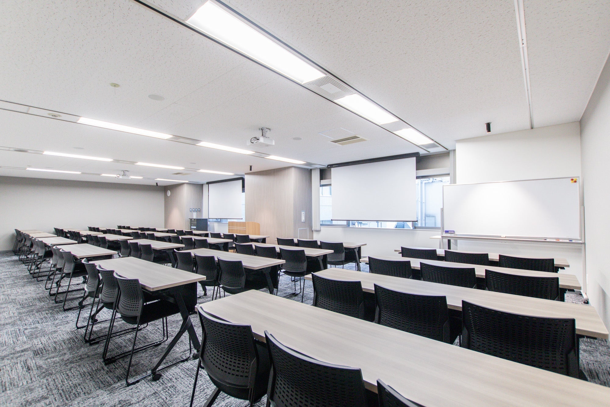 横広い会場で圧迫感なくご利用いただけます。セミナー、講習会、試験などに最適です。