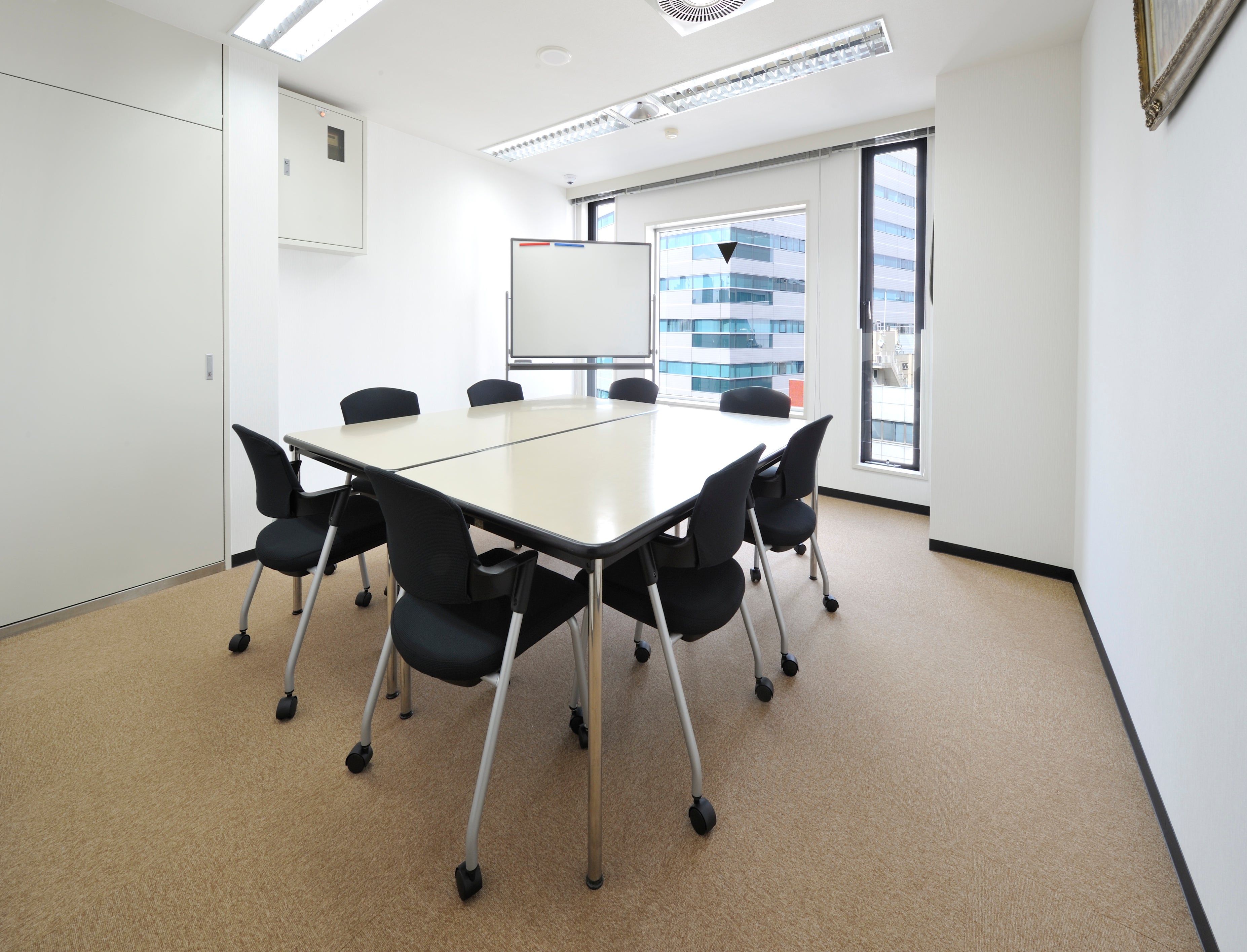 少人数のミーティングや面接などに最適。 机が広いので、図面を広げての打ち合わせなどにも向いています。 A+B+C利用時の控室としてもご利用ください。