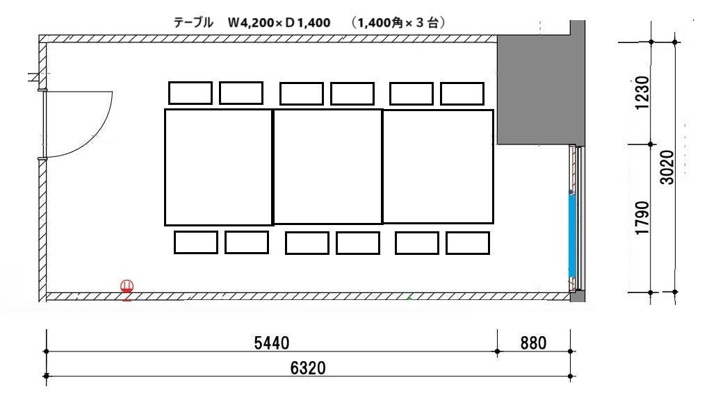 収容12名・テーブルや椅子、wifiは無料でご利用いただけます