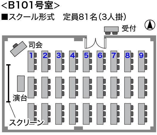 ●地下1階の静かな環境でご利用可!WiFi完備!有線LANも無料! ●健康診断ご利用の会場としても人気です! ●B101号室とB102号室を一緒にお使いの際は、前室のロビーもご利用可!(※事前 申請要) ●パーティープラン適用に限り5,000円でご利用可!(※飲食は別料金)