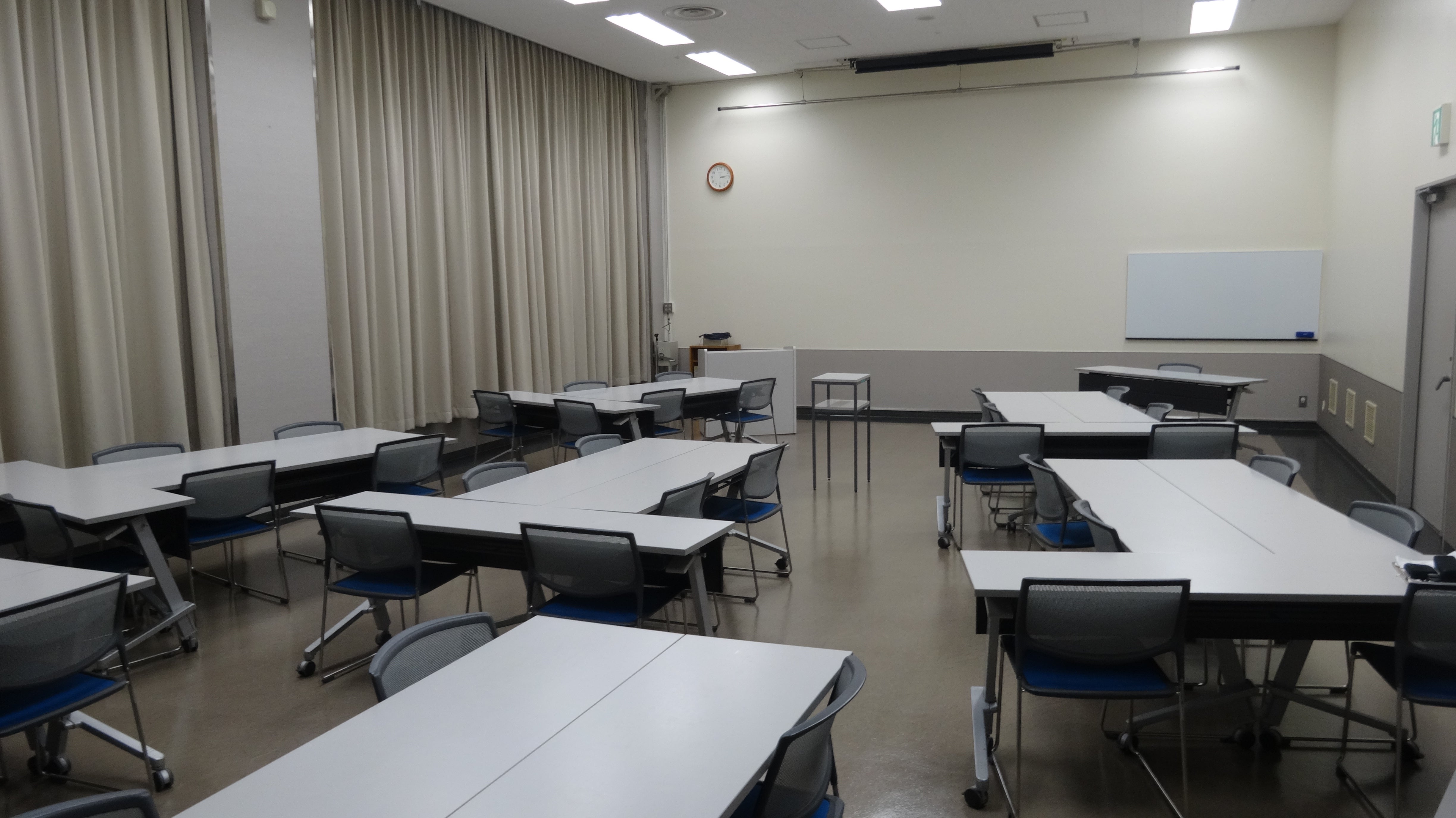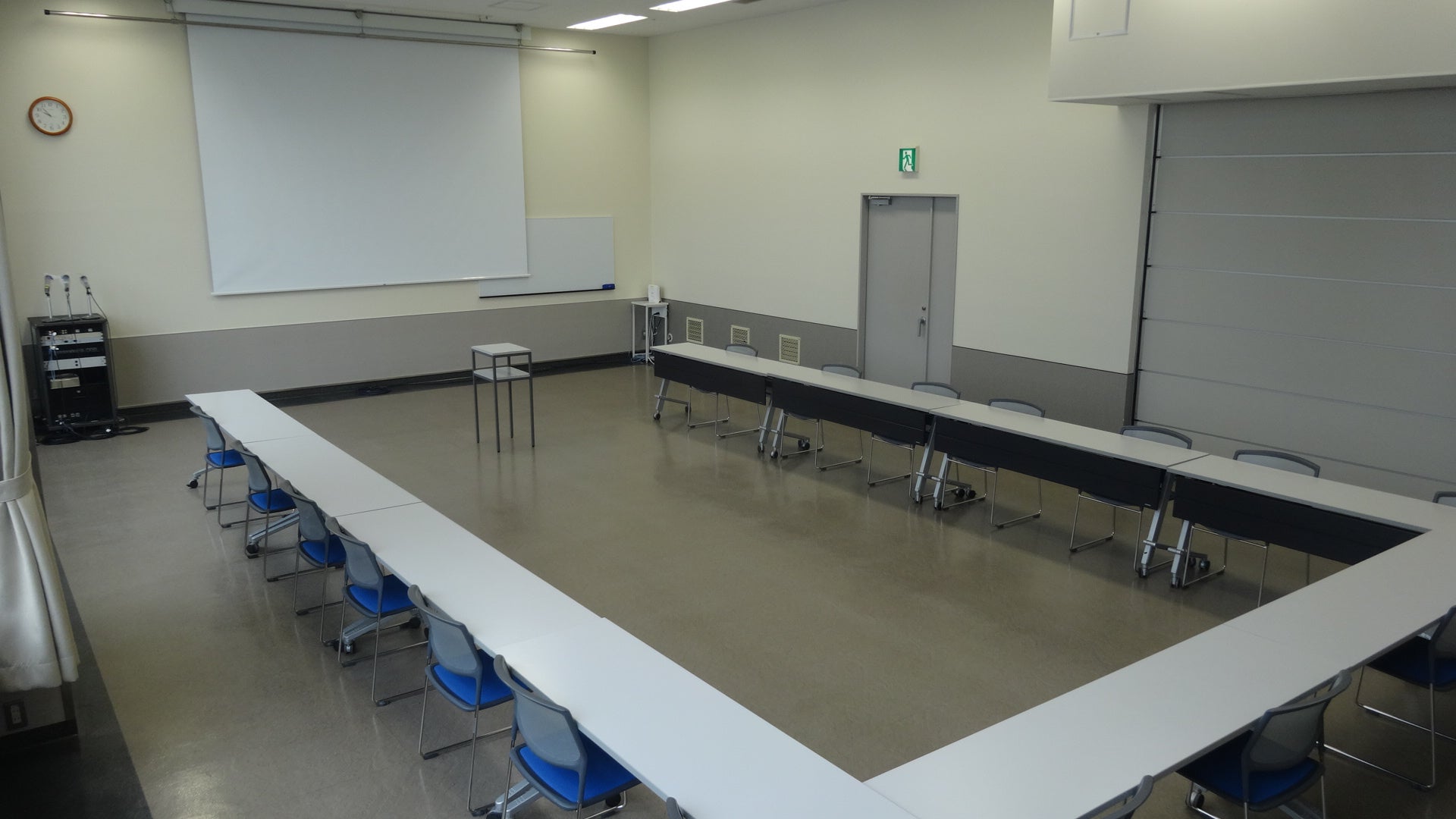 8階小ホールと隣接の中ホールの間仕切りシャーターを開放すると、中・小ホール通しでご利用が可能。最大収容人数216席確保。また、多目的ホールとなっており、展示会やポスターセッション等のイベント開催も可能。