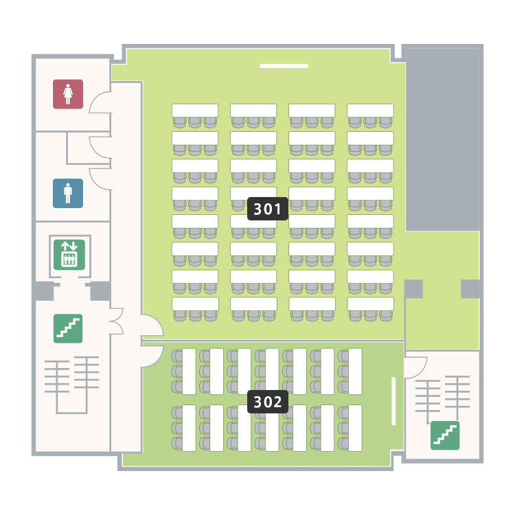 | おすすめ用途 | イベント会場、展示会、学会、懇親会、社員研修、セミナー、試験会場 等 |