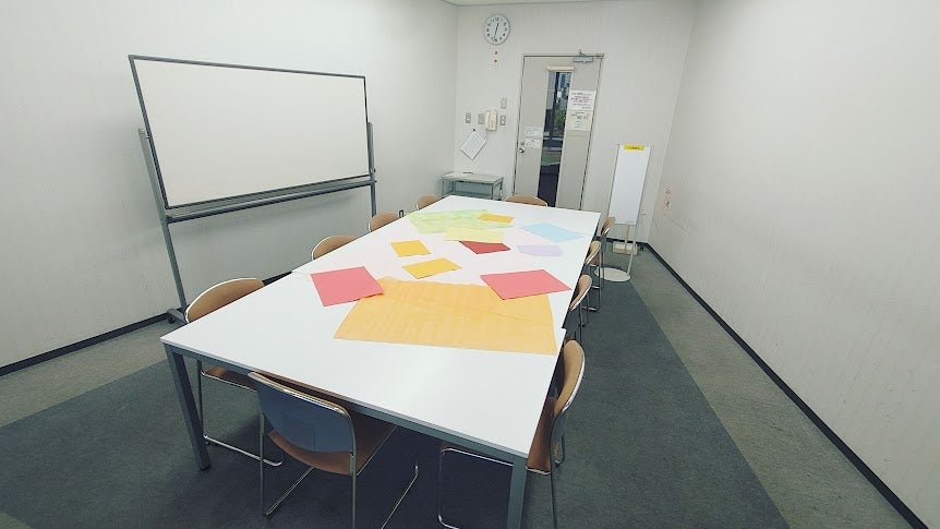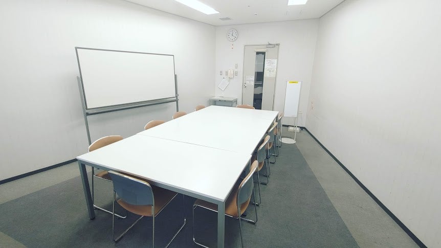 ●通常島型で10名収容 ●レイアウト変更も自由です(利用時間内で準備・原状復帰を行って下さい) ●無料常設備品:ホワイトボード(1枚)、案内板(1台)、傘立て(1台)、Wi-Fi ●お部屋の鍵、ホワイトボード用マーカーは2階受付でお渡し致します。 ●館内はゴミ箱がございませんので、各自お持ち帰り下さい。
