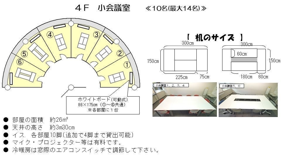 おすすめ用途 | 会議、セミナー、研修、勉強会、面接会場、テレワーク、自習室等 |