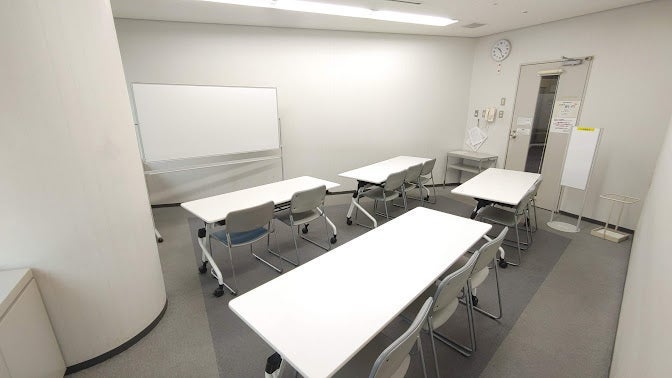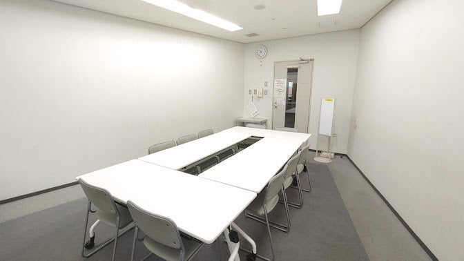 ●通常ロの字形式で10名収容 ●レイアウト変更も自由です(利用時間内で準備・原状復帰を行って下さい)。 ●無料常設備品:ホワイトボード(1枚)、案内板(1台)、傘立て(1台) ●お部屋の鍵、ホワイトボード用マーカーは2階受付でお渡し致します。 ●館内ゴミ箱ございません。お客様でお持ち帰りをお願い致します。