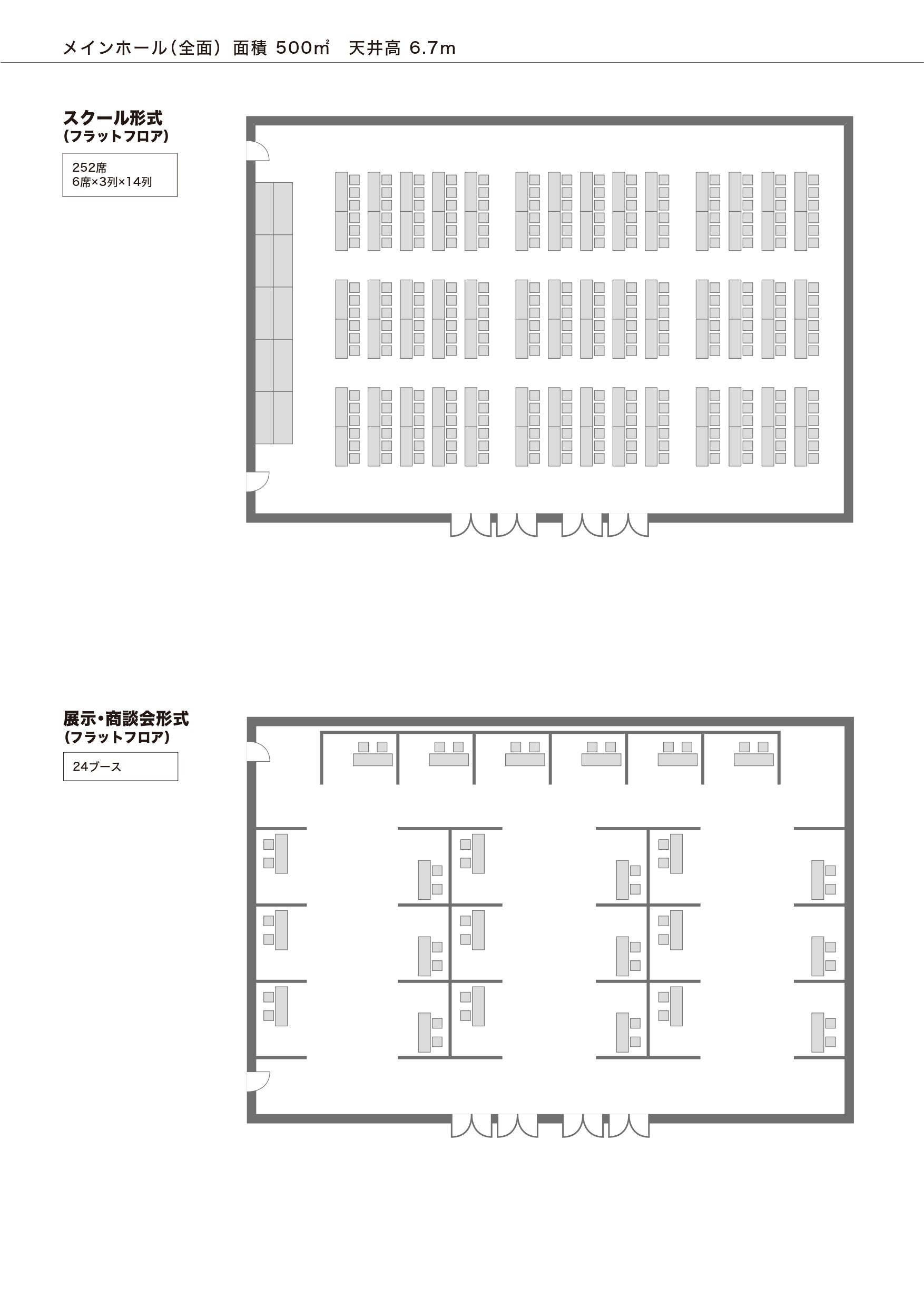 | 1時間当たりの料金目安 (税込) | お問い合わせください 最低利用時間:①会議・セミナー利用:2時間利用~ ②展示・イベント利用:半日利用 5時間~ |