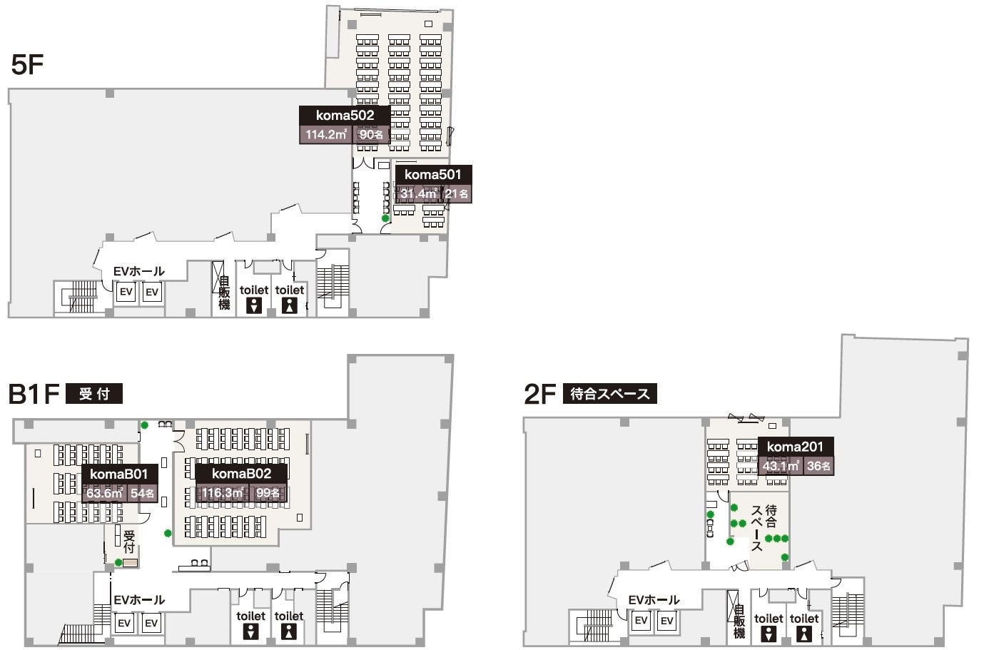 検討 リスト | 会場名 | 面積 | 天井高 | 収容人数(キャパシティ) | 料金目安 /1h(税込) | ||||