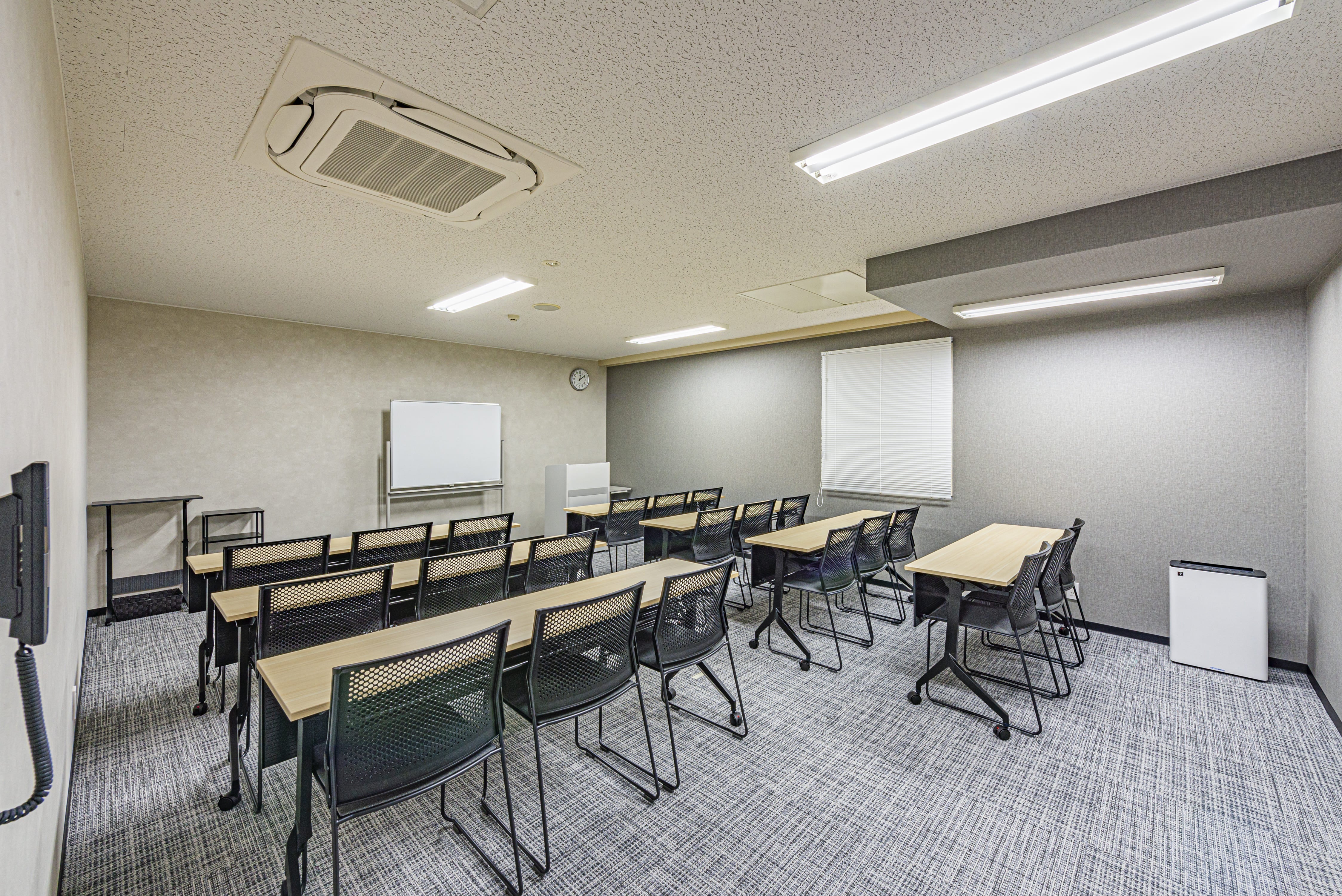 スクール形式最大21名収容の小規模会場でございます。 少人数での会議やオンラインセミナーの配信会場、控え室など様々な用途にお使いいただけます。リーズナブルな価格でご利用いただけるため、初めての方にもおすすめです。