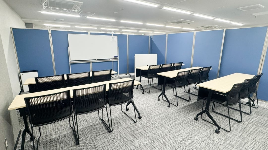 収容人数8~25名の小規模会場。会議・面接・セミナーなどに最適です。 こちらの部屋タイプは、少人数様でもご利用いただきやすいようパーテーションで空間を仕切り、部屋サイズを調整しております。