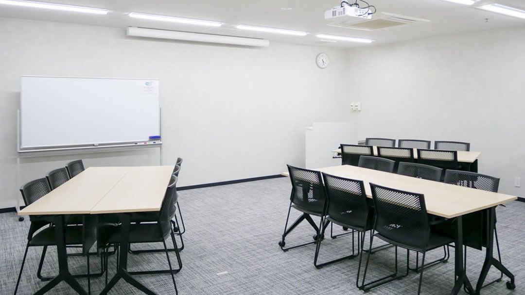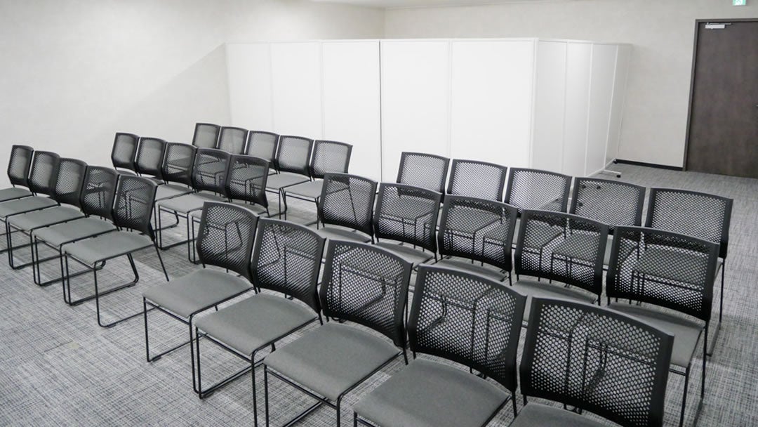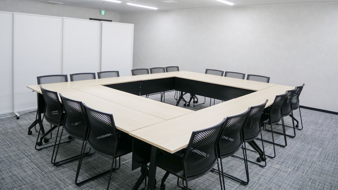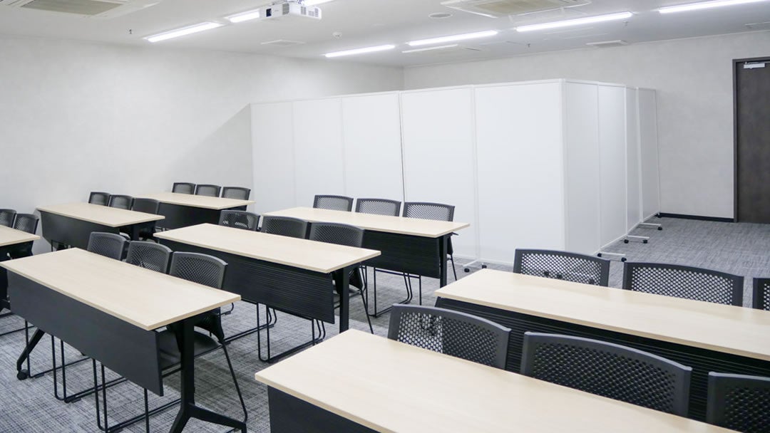 収容人数24名の小規模会場。会議・面接・セミナーなどに最適です。 こちらの部屋タイプは、少人数様でもご利用いただきやすいようパーテーションで空間を仕切り、部屋サイズを調整しております。