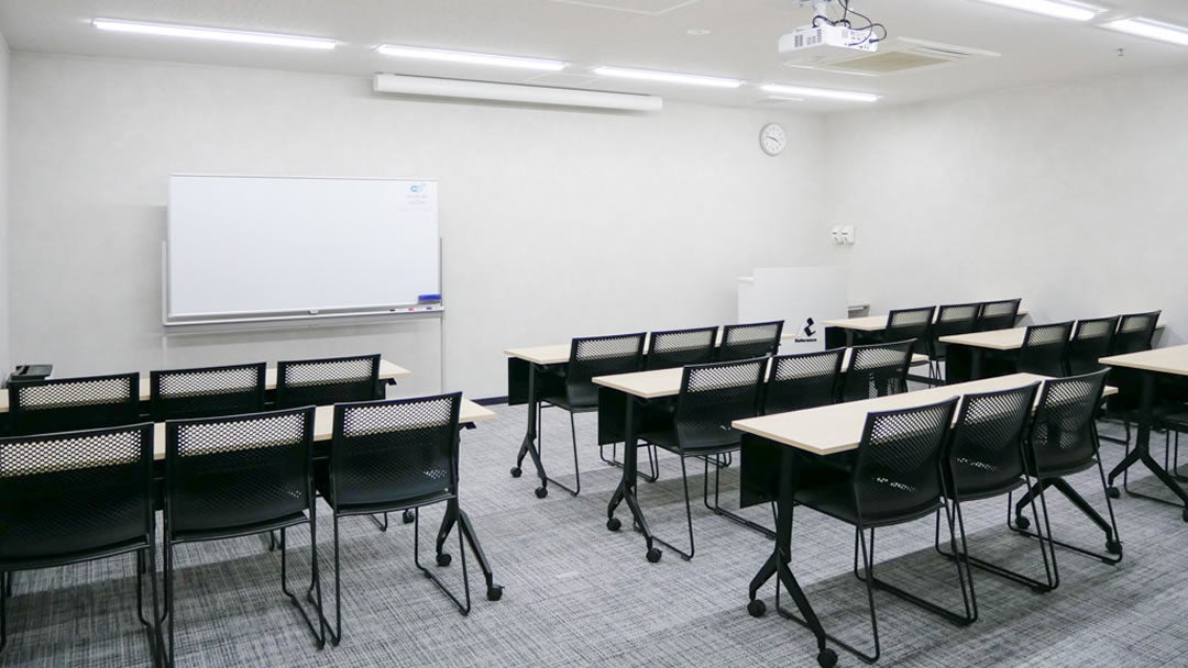 収容人数24名の小規模会場。会議・面接・セミナーなどに最適です。 こちらの部屋タイプは、少人数様でもご利用いただきやすいようパーテーションで空間を仕切り、部屋サイズを調整しております。