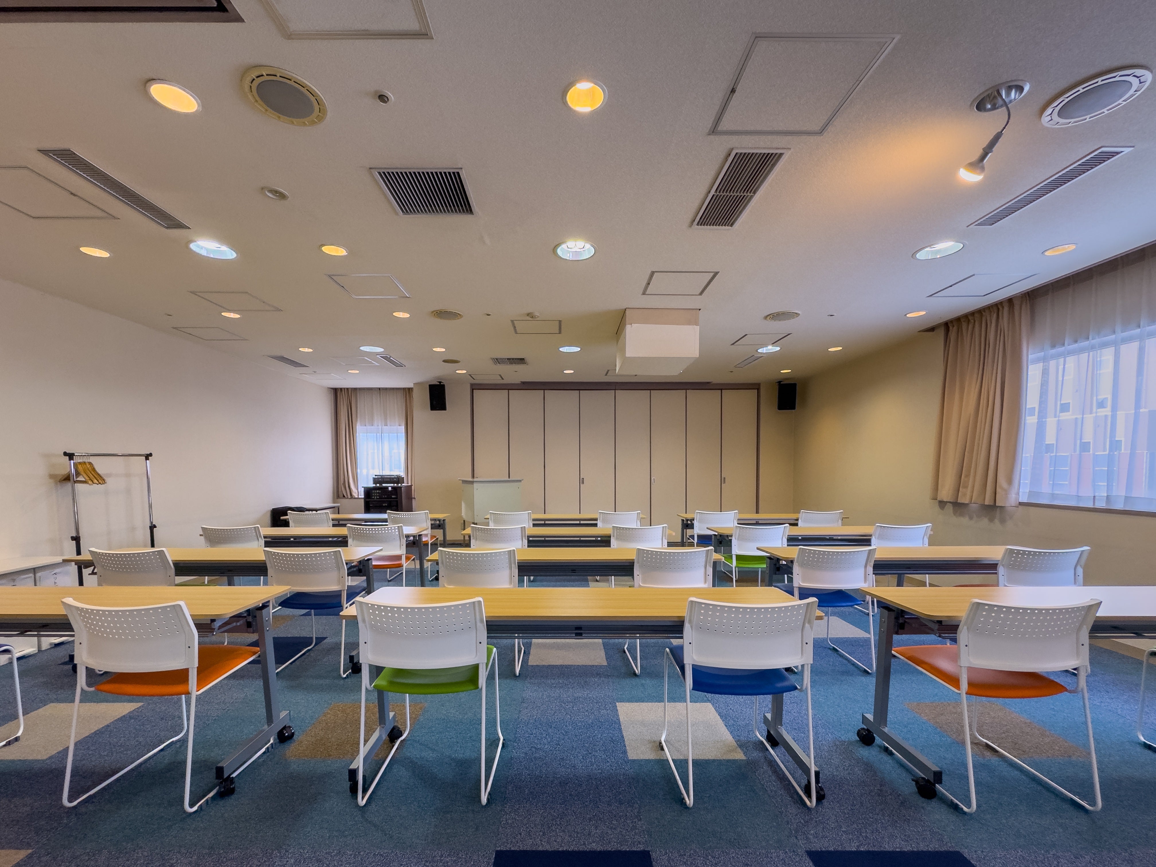 Wi-Fi完備、電源コンセントも多数あり。シアター形式なら最大100名様までご利用可能