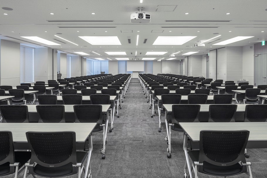 2面採光で、縦使いも横使いも可能。入社式、内定式、セミナー等に最適です。
