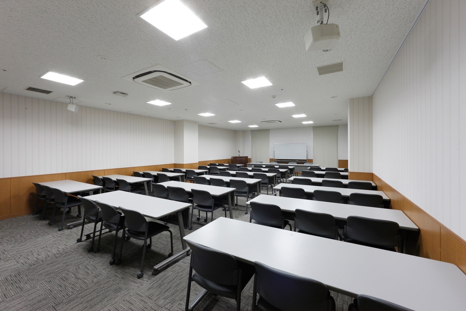 スクール形式で60席のお部屋になります レイアウトの変更は可能ですが、お客様ご自身でお願いします。原状復帰でお願いします なお、準備お片づけの時間も利用時間に含まれます 入室は予約時間の10分前からとなります 退出も終了時間より10分までとなります 宅配便での資料等の送付については事前にご連絡下さい ご希望に添えない場合もございます また冷蔵・冷凍品のお預かりは専用施設が無い為お受けできません