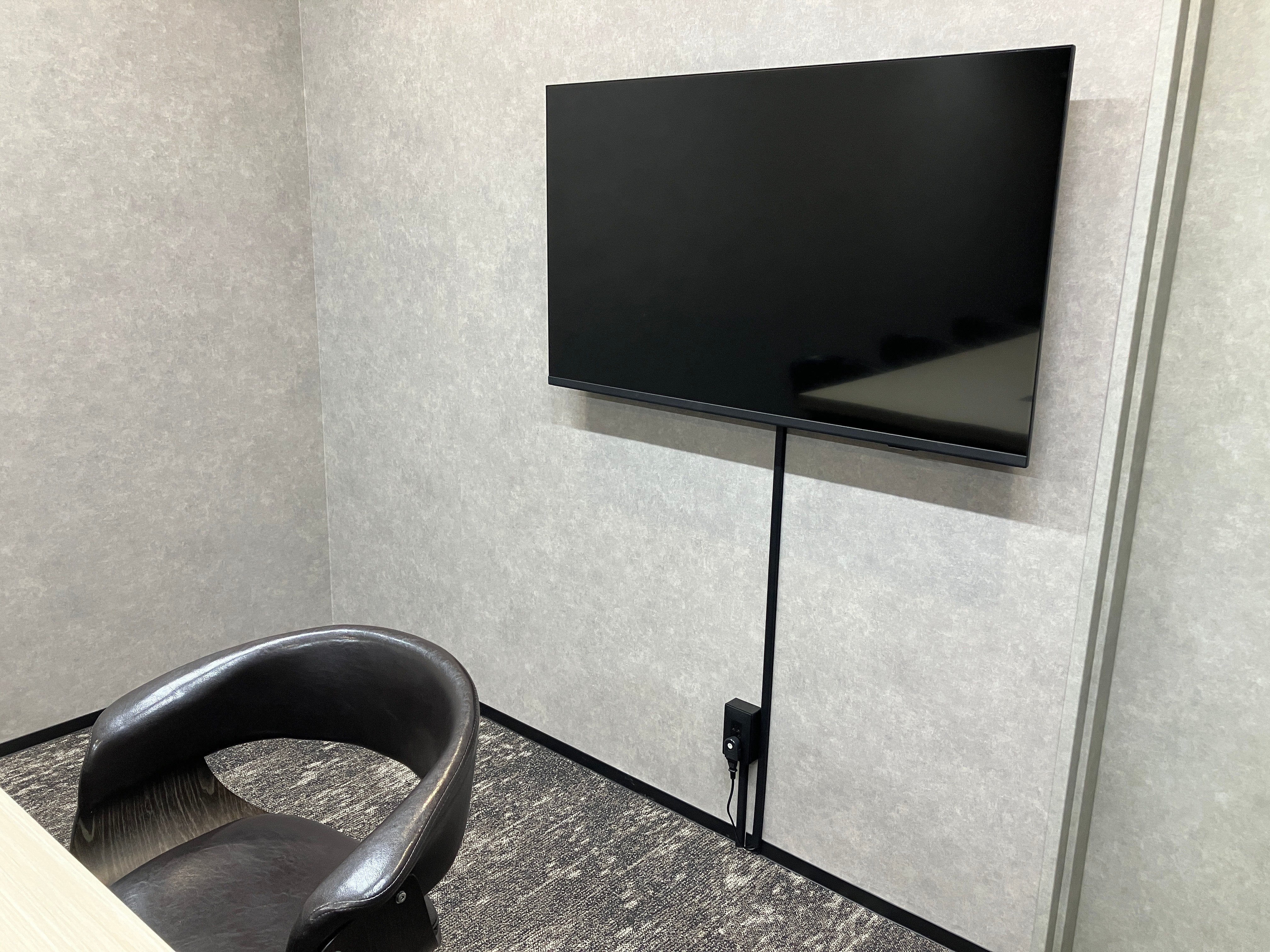 最大10名のミーティングルーム。50型の壁掛液晶モニター常設!