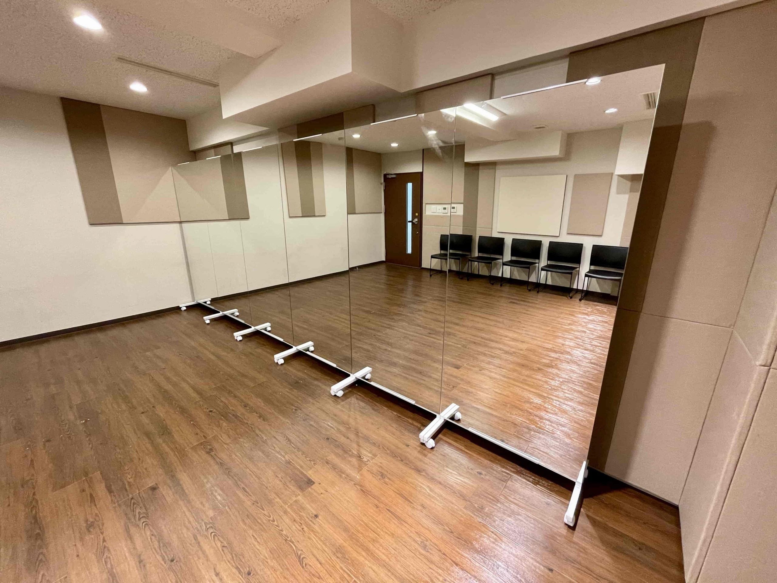 鏡は幅80cm×高さ178.5cmのものを6枚連結!(合計幅480cm) 最大6名利用可能の、リーズナブルな防音ダンスルームです! 更衣室やウォーターサーバーも無料で使えるのが魅力!! さらに、清掃・消毒で衛生面も安心です!