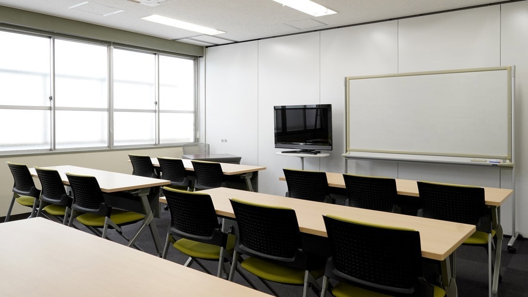 【スタッフ常駐で安心】 ◆営業時間 平日9:00~17:30 ◆広さ34.6㎡ (18名着席可能) ◆無料高速Wi-Fiあり ◆飲食OK (アルコール不可) ◆レイアウト変更OK ◆室内完全禁煙 ◆セミナーや会議に適した備品を無料貸出 (モニター、プロジェクター、ホワイトボード) ※モニターは別会場の予約で同日時未使用時に貸出可 ※プロジェクターは壁への投影 ◆別フロアにコピー機あり