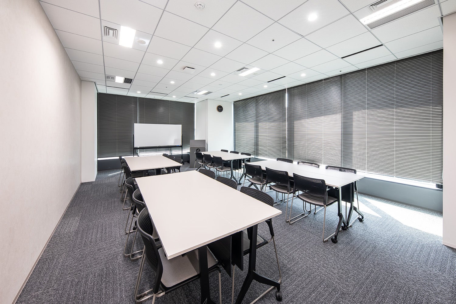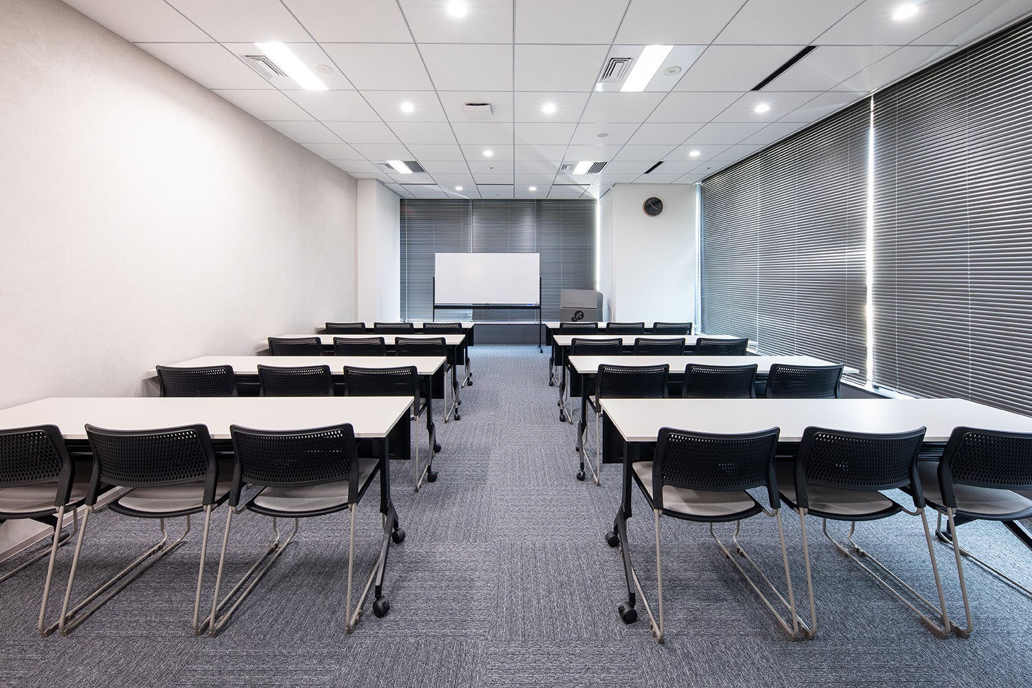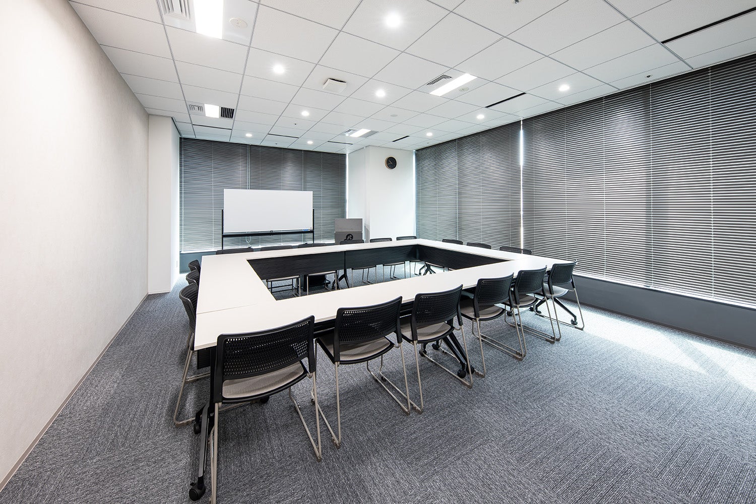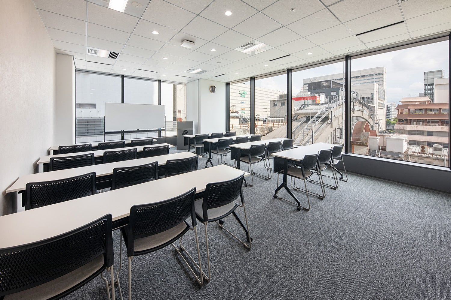 スクール形式で最大24名まで収容可能な少人数向けの会議室です。