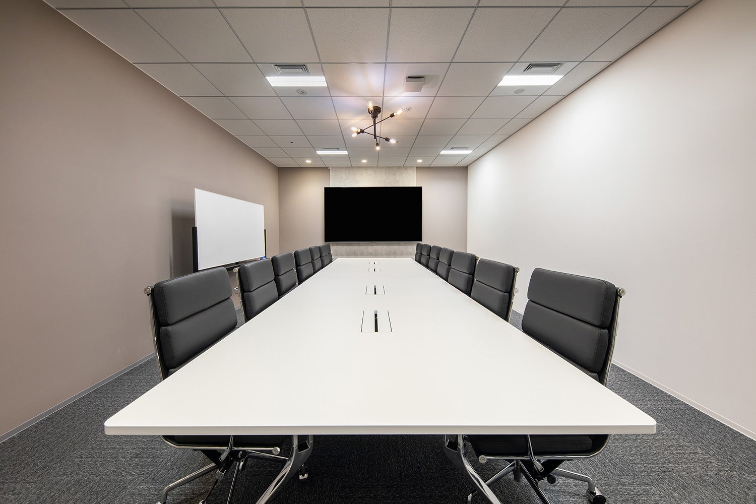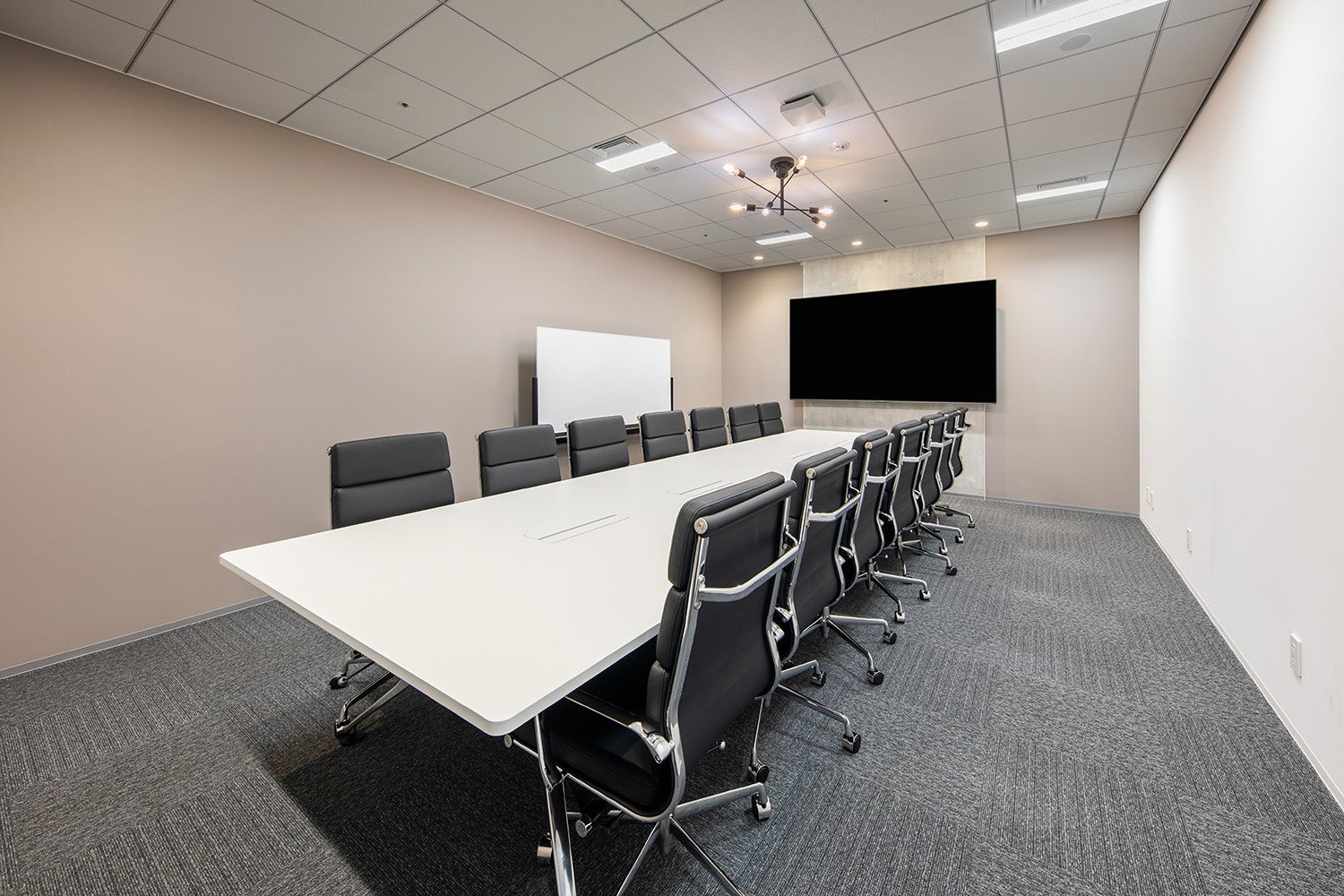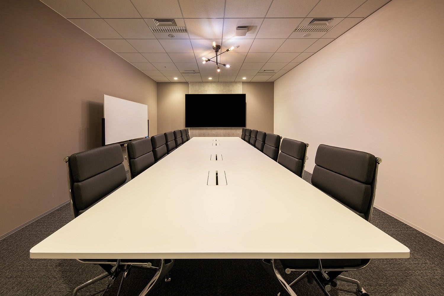 広々とした会議用テーブルに座り心地のよいチェアを完備し、長時間の打ち合わせやミーティングも快適に。 PCを接続するだけで、スムーズにオンライン会議やプレゼンテーションが開始できます。