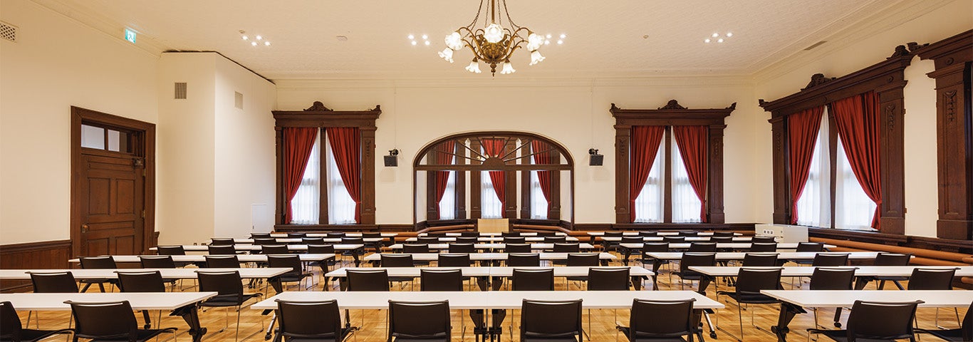 重要文化財の貴賓あふれる貸室「赤れんがホール」、半地下に位置する落ち着いた貸室「道民ベース」一般利用を受け付けております。 ビジネスミーティング・セミナー・懇親会・イベント等でご利用ください。