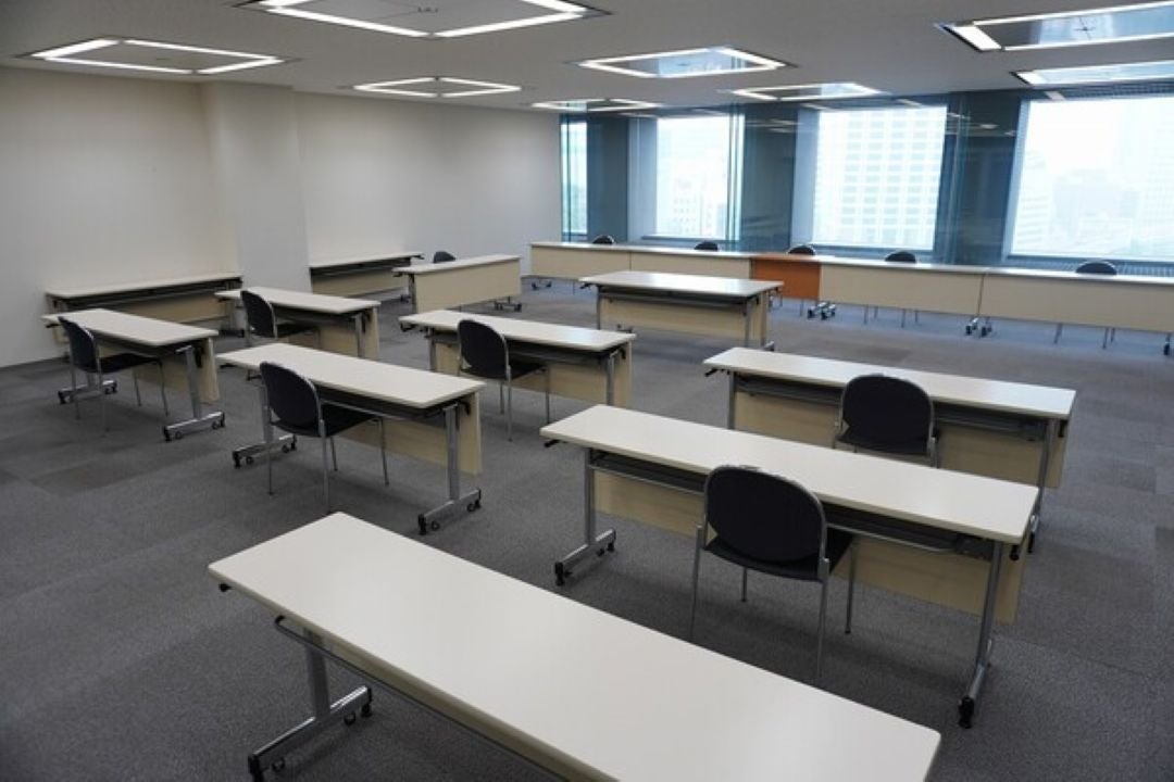 中規模の会合、総会、打合せ等に適しております。 プロジェクター・スクリーンを設置できます。(マイク使用不可の会議室です) ガラス壁から赤坂御苑の緑、国立競技場の眺望が広く映え、自然光が入り解放感があります。