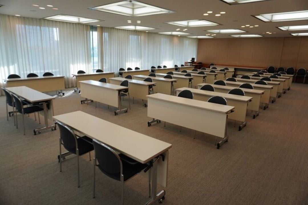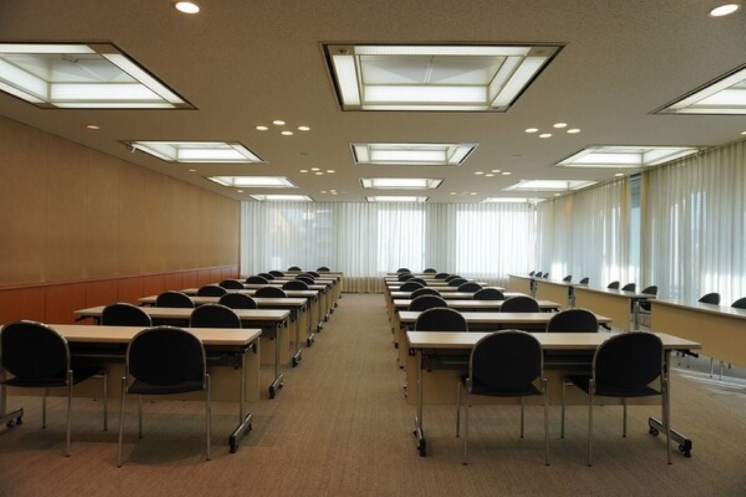 中規模の講演会、総会等に適しております。 プロジェクター・スクリーンを設置できます。 2面のガラス壁から永田町界隈の眺望が映え、自然光が入り解放感があります。 ガラス窓を除く壁面にマグネットでポスター等を添付することが可能です。