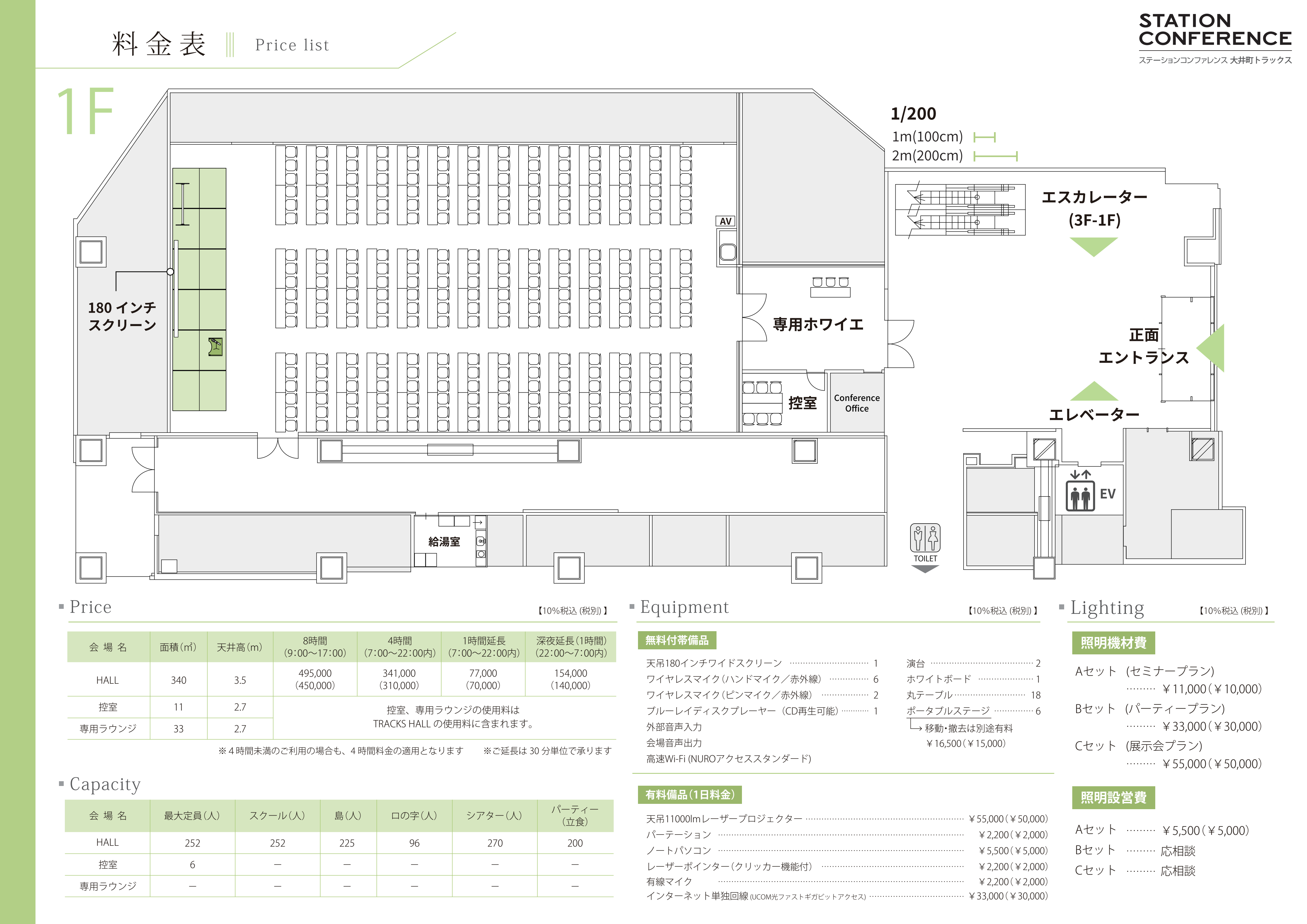 検討 リスト | 会場名 | 面積 | 天井高 | 収容人数(キャパシティ) | 料金目安 /1h(税込) | ||||