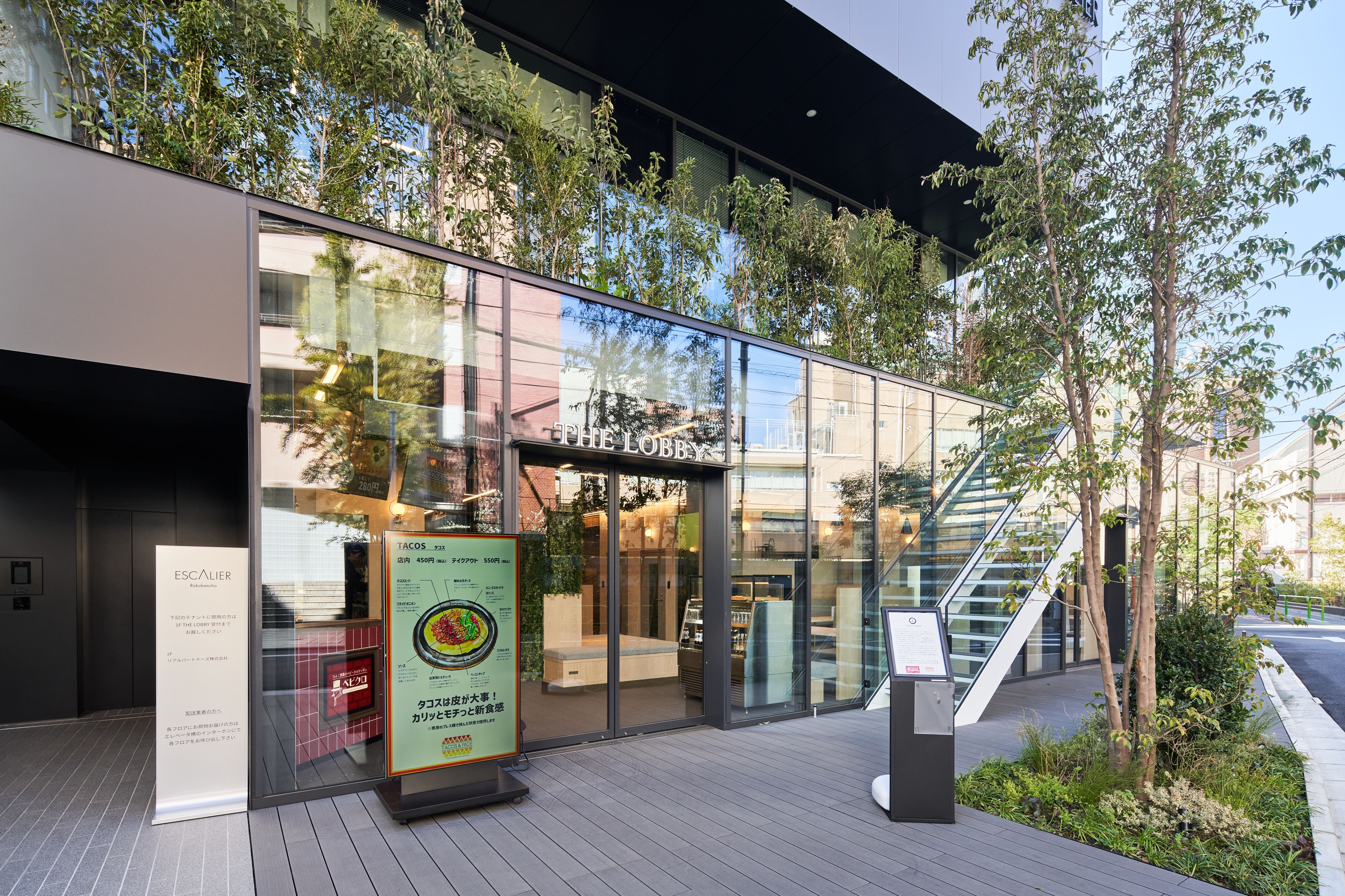 四ツ谷駅麹町口から番町学園通り通って徒歩4分。陽光あふれるガラス張りのカフェ【THE LOBBY六番町】開放感あふれる1階路面店は、2名様からご利用可能な個室会議室を9部屋、最大30名様まで対応の大型ミーティングスペースも完備し、全席コンセント&高速フリーWi-Fi完備で、リモートワークや打ち合わせにも最適。お食事は、話題のオリジナルタコスをはじめ、バラエティ豊かなフード&デザートをご用意。