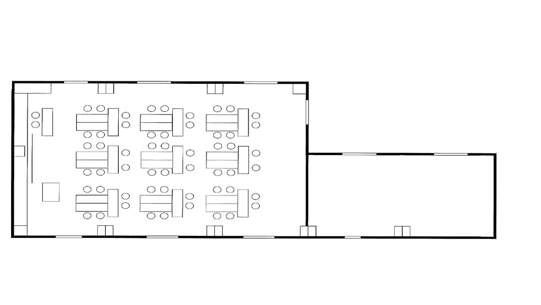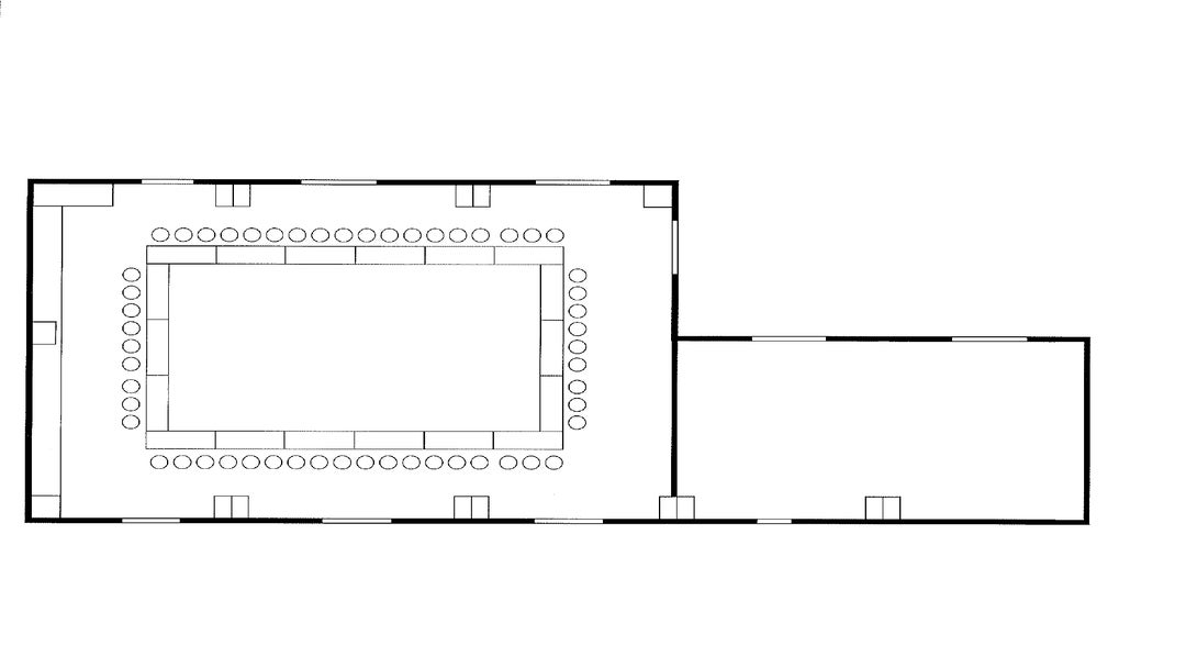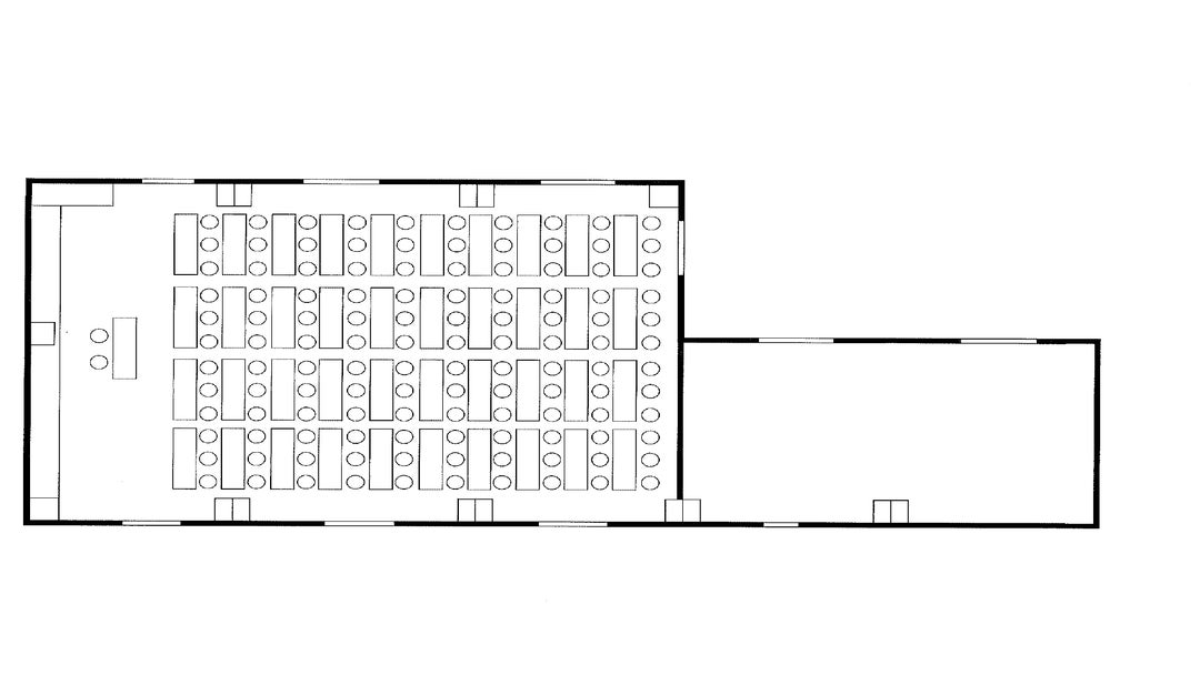 最大120名の人数での会議が可能な大会議室。 明るくゆったりとしたスペースは、企業研修はもちろん、入社式・試験・講演会など使い勝手のよい研修室です。 教材説明・プレゼンテーションでの利用におすすめです。