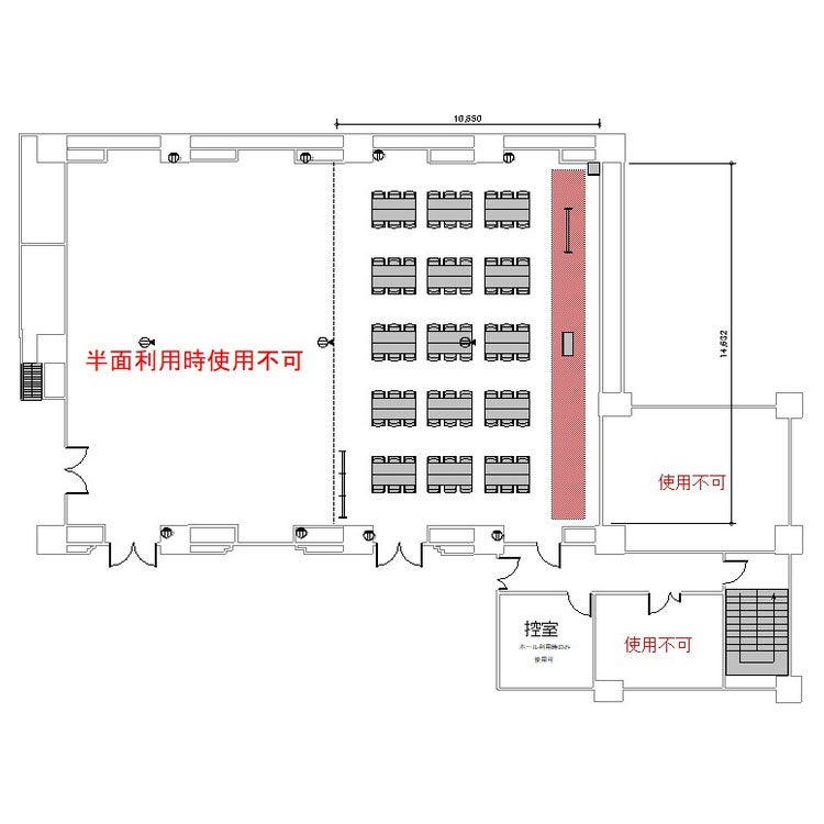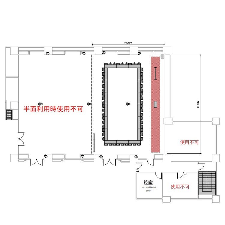 ※プロジェクターを設置する場合は表記の最大定員を収容できない場合がございます。