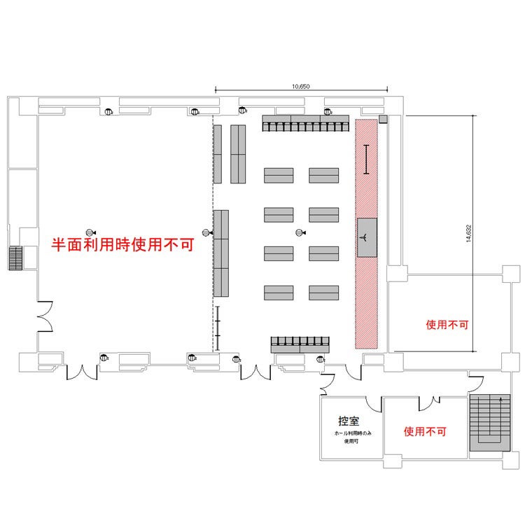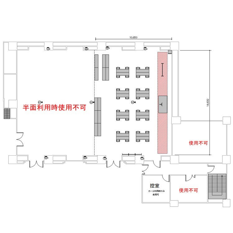 ※オプションサービス・備品・ケータリングサービスのお申し込み、レイアウトを変更される場合は、ご利用日の3営業日前までにご連絡ください。