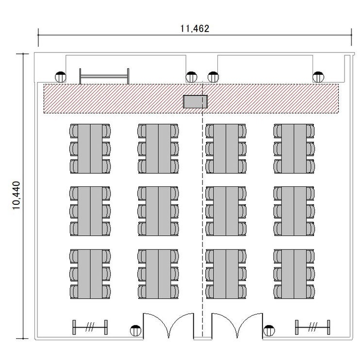 ※プロジェクターを設置する場合は表記の最大定員を収容できない場合がございます。