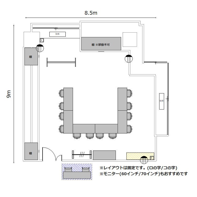 ※オプションサービス・備品・ケータリングサービスのお申し込み、レイアウトを変更される場合は、ご利用日の3営業日前までにご連絡ください。